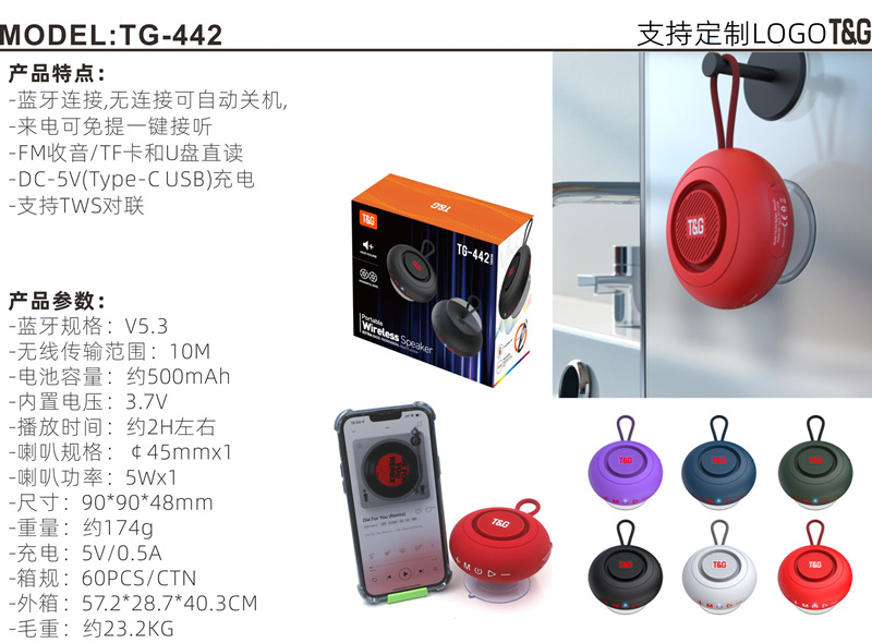 국경 TG442 대형 흡입 컵 블루투스 스피커 휴대용 카드 무선 tws 욕실 오디오 블루투스 높은 색상 값스토어 가기