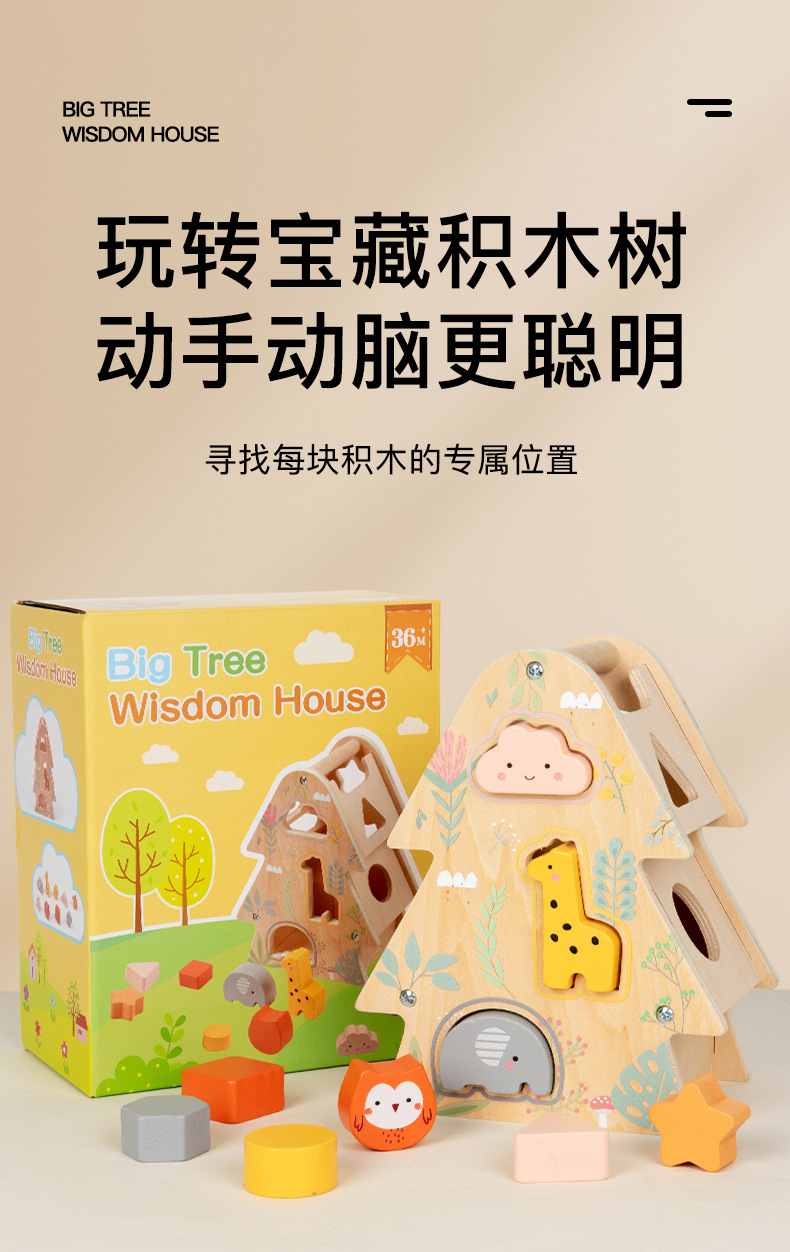 어린이 숲 작은 나무 나무 장난감 퍼즐 빌딩 블록 장식품 기하학적 동물 그래픽인지 나무 장식
