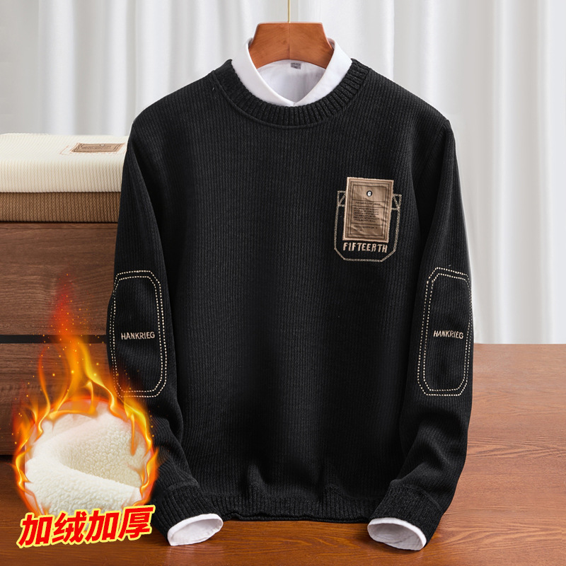남성용 크로스보더 가을 겨울 올인원 벨벳 라운드 넥 스웨터, 벨벳 두껍고 따뜻한 청소년 셔닐 베이스 스웨터