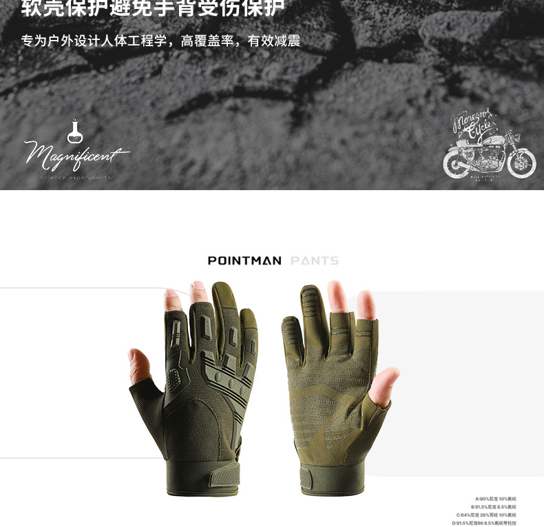남성 투핑거 착용 방지 야외 등산 비 슬립 운전 터치 스크린 오토바이 오토바이 보호 안티 드롭 전술 장갑