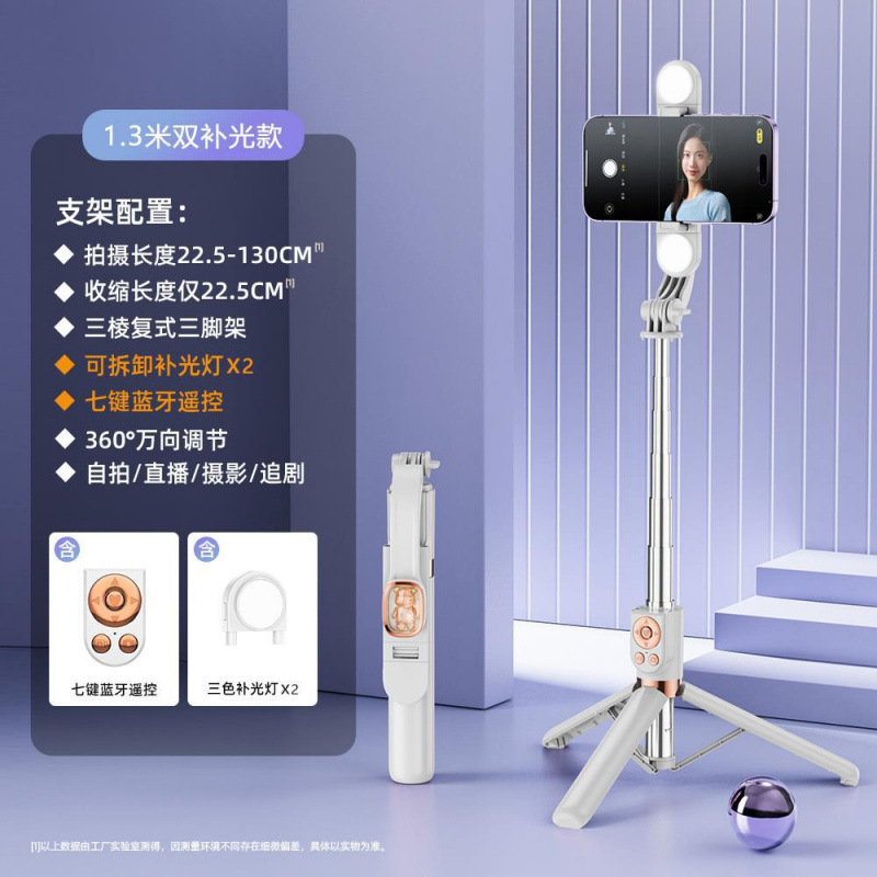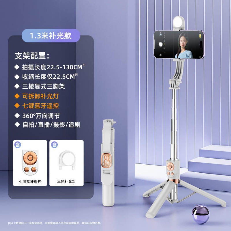 • 아이보리 화이트 1.3m + 3색 뷰티 램프 [리브 지지대 + Douyin 리모콘]