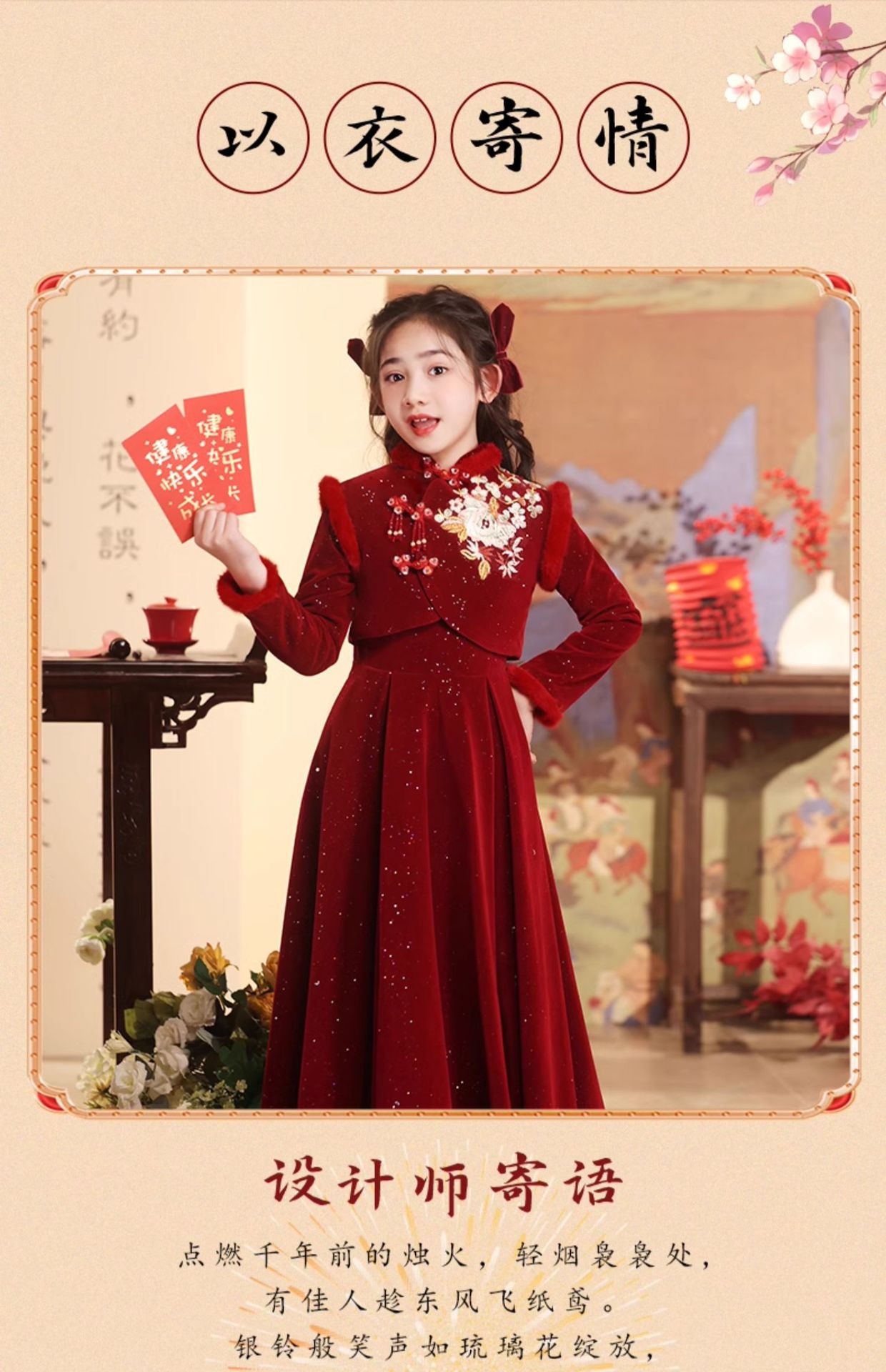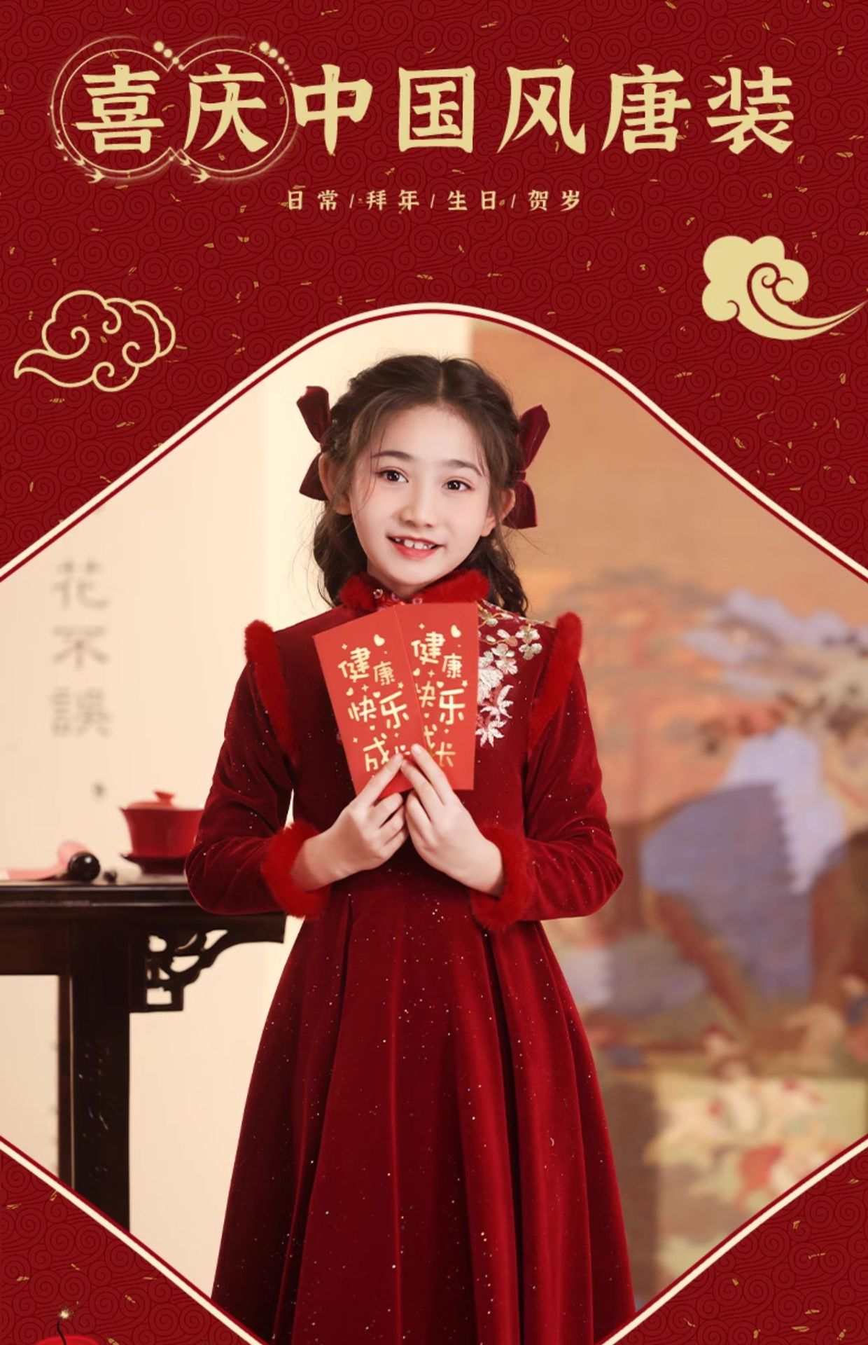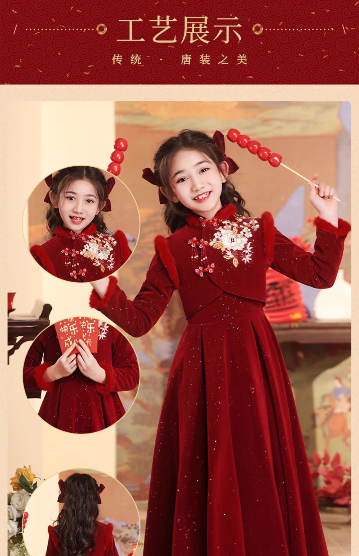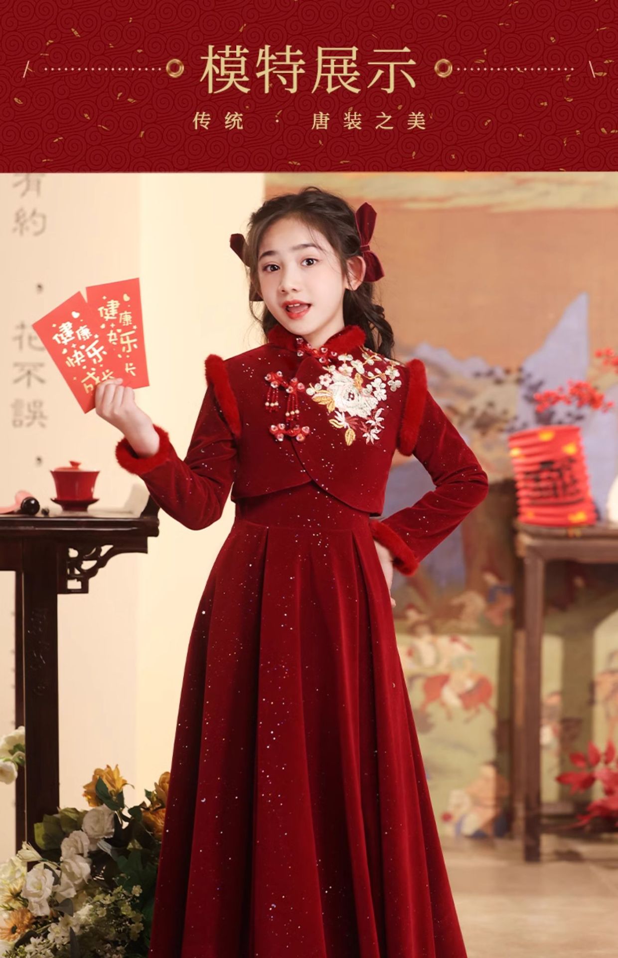 한푸 소녀 가을과 겨울 새 어린이 붉은 새해 옷 새해 복 새 중국 스타일 국가 스타일 겨울 옷스토어 가기