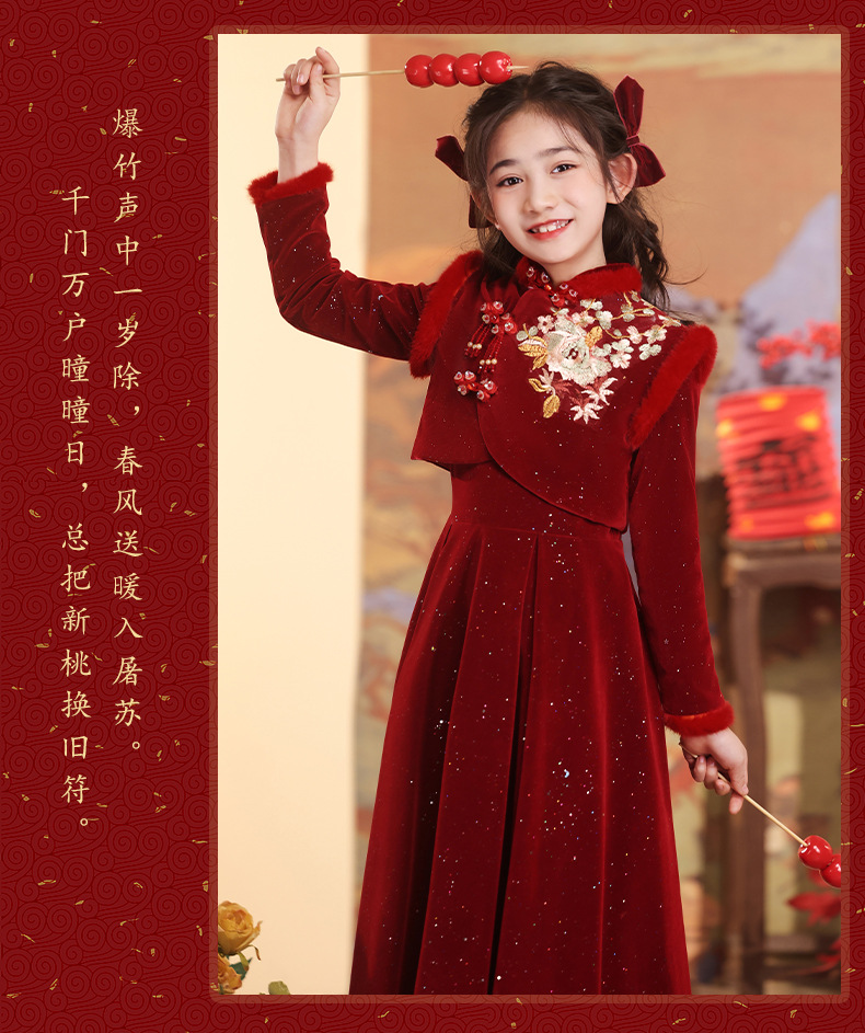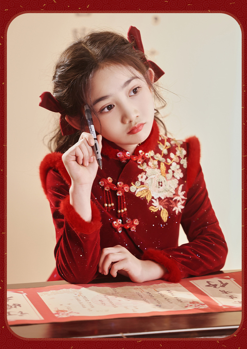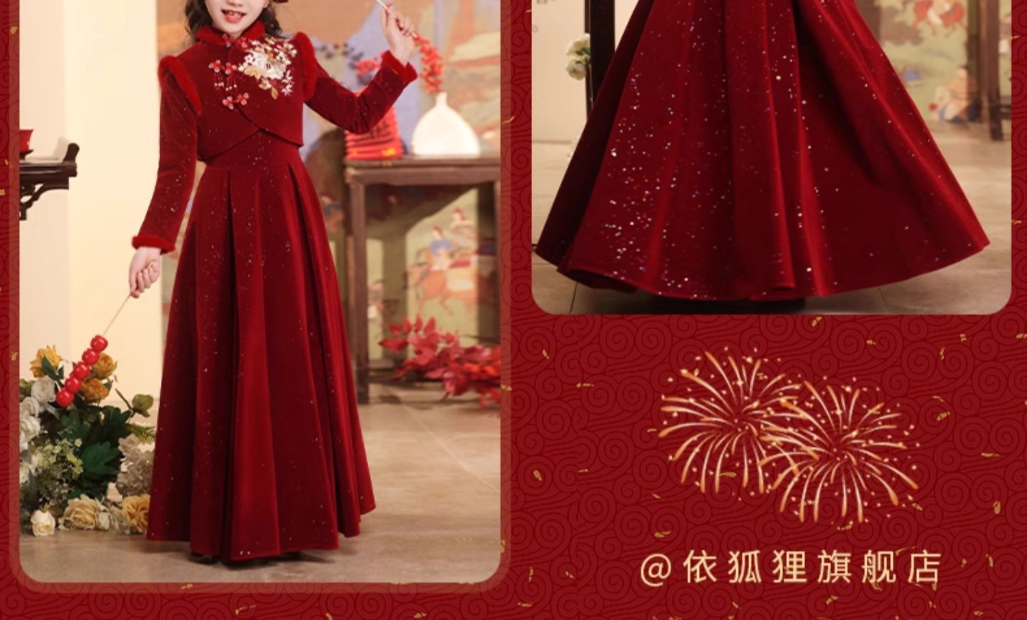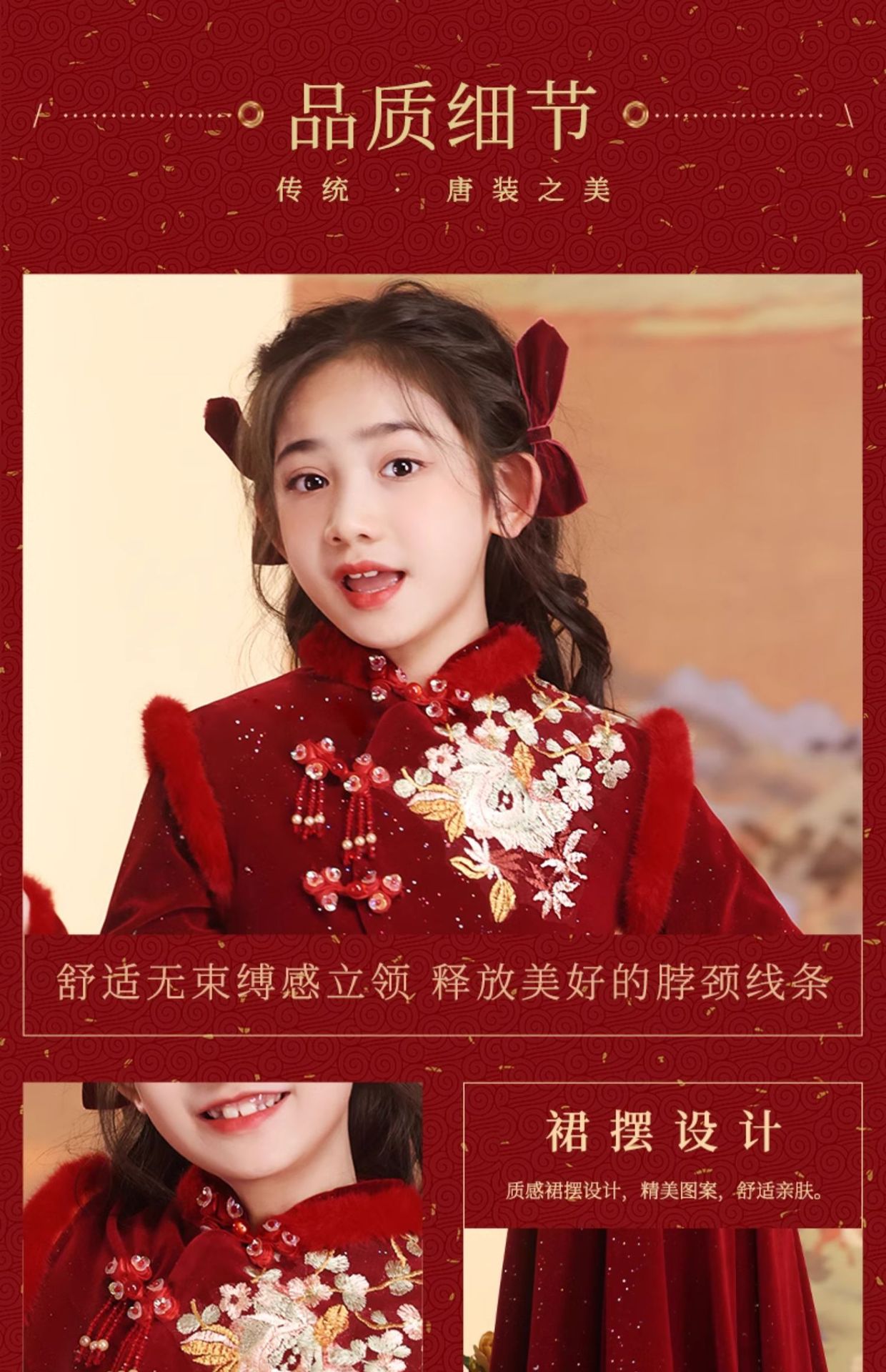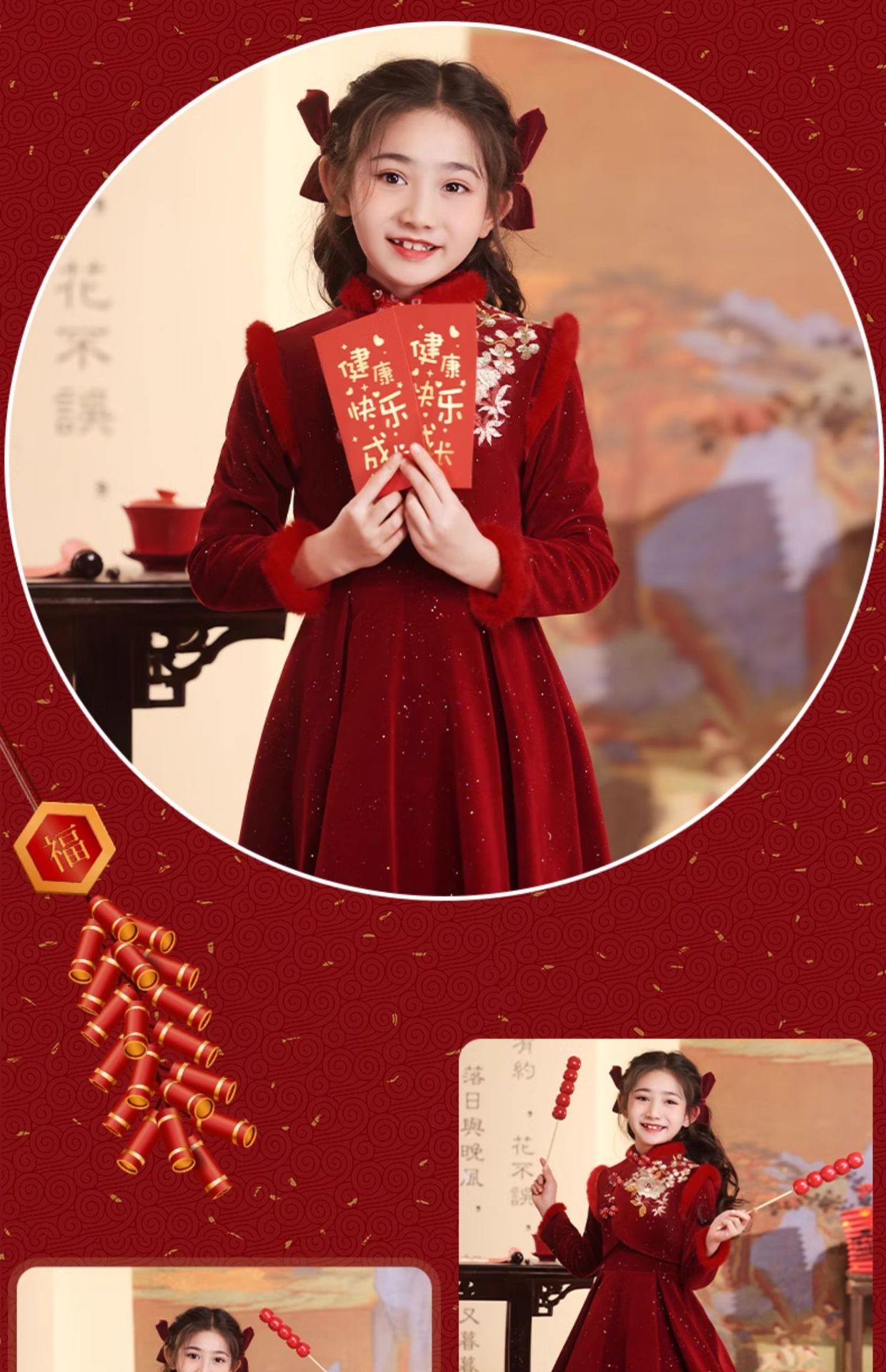 한푸 소녀 가을과 겨울 새 어린이 붉은 새해 옷 새해 복 새 중국 스타일 국가 스타일 겨울 옷스토어 가기
