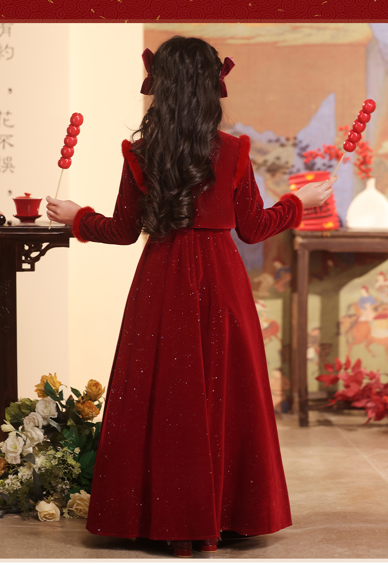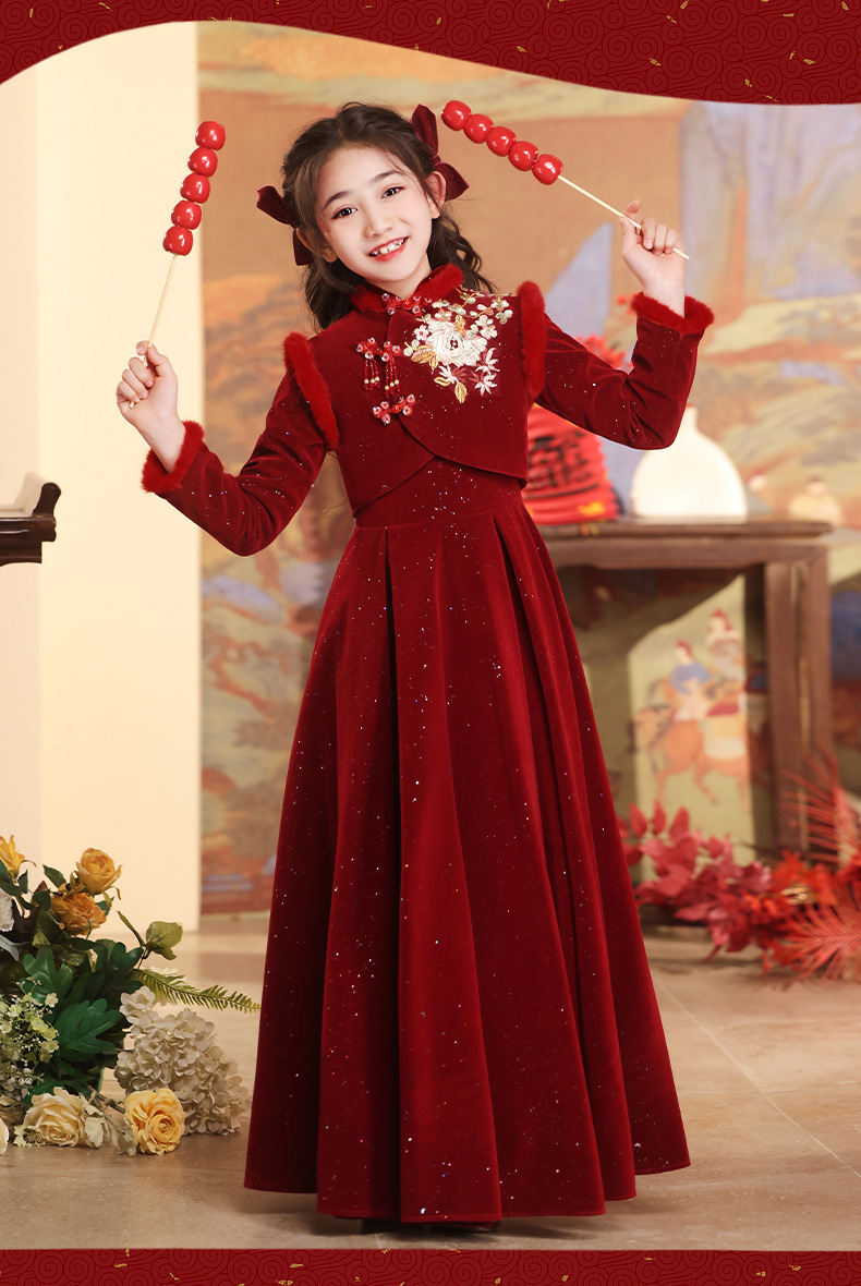 한푸 소녀 가을과 겨울 새 어린이 붉은 새해 옷 새해 복 새 중국 스타일 국가 스타일 겨울 옷