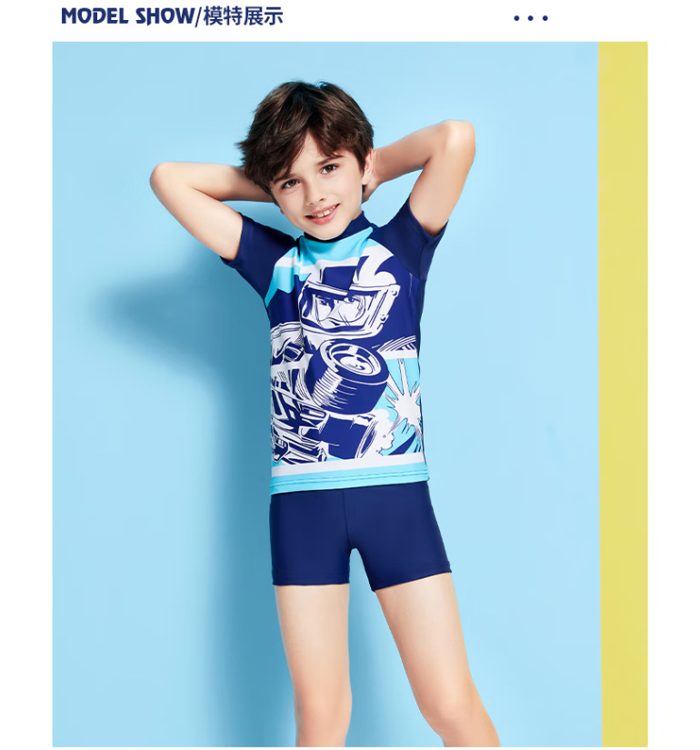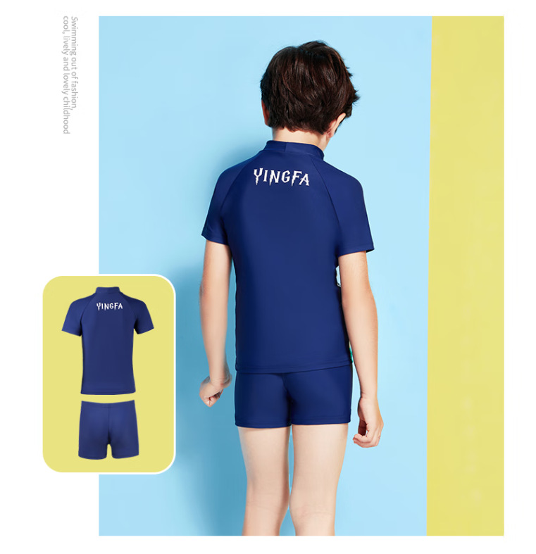 Yingfa 새로운 어린이 분할 수영복 소년 짧은 소매 조끼 복서 스포츠 태양 보호 만화 그림스토어 가기