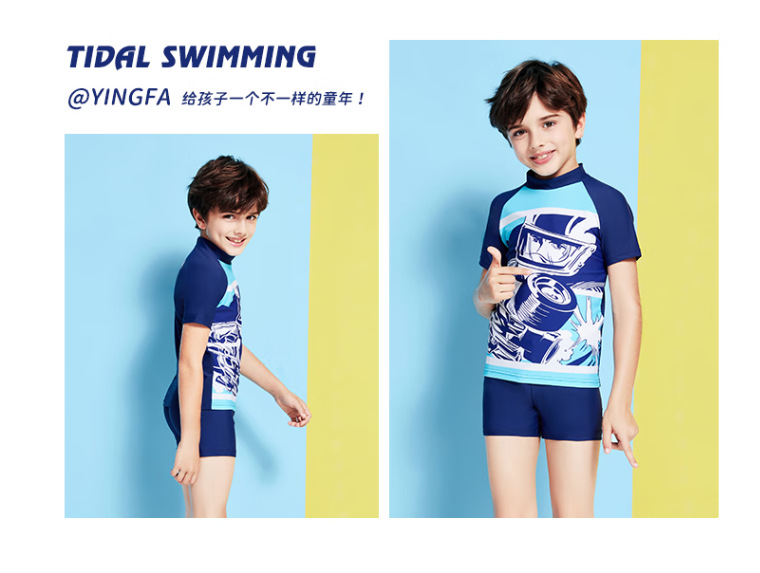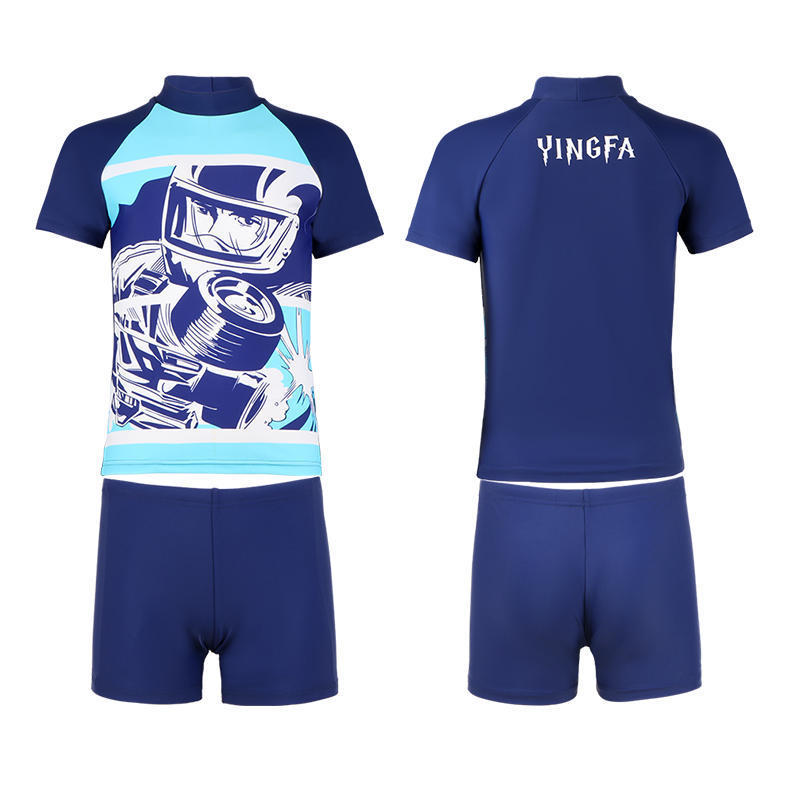 Yingfa 새로운 어린이 분할 수영복 소년 짧은 소매 조끼 복서 스포츠 태양 보호 만화 그림