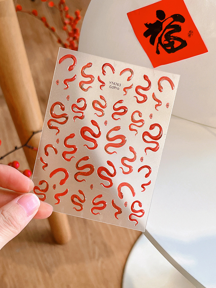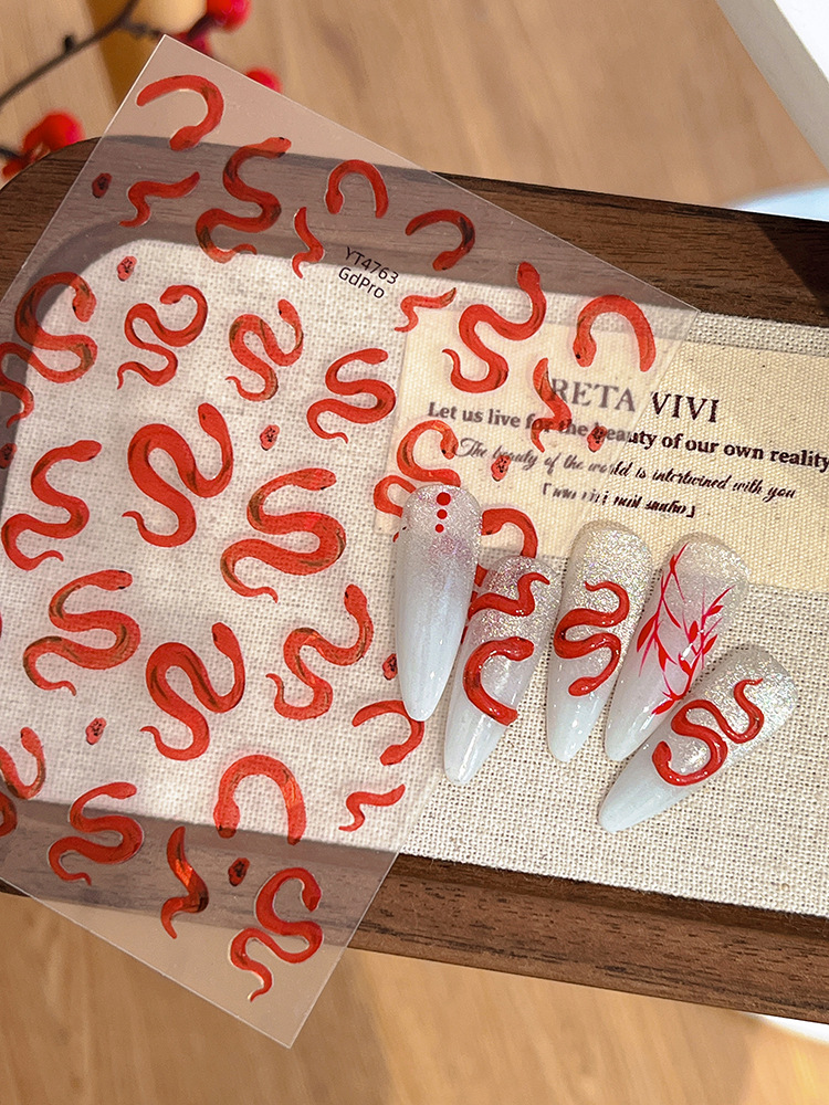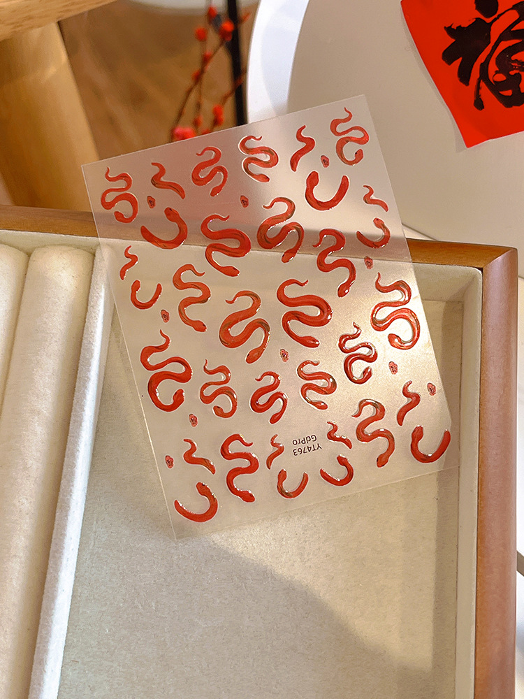 YITU 개미 그림 젤리 붉은 뱀 네일 아트 스티커 접착제 네일 장식 스티커 스테레오 불규칙한 모양 YT4763스토어 가기