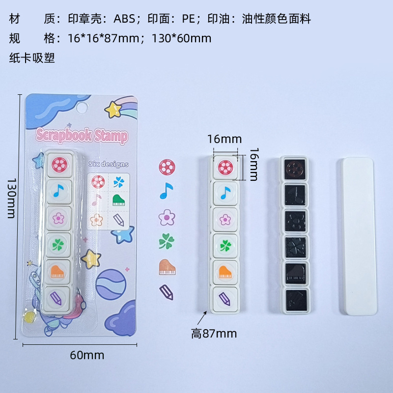 새로운 플라스틱 프레스 감광성 씰 만화 패턴 어린이 창조적 인 6 조인트 씰 미니 DIY 스탬프