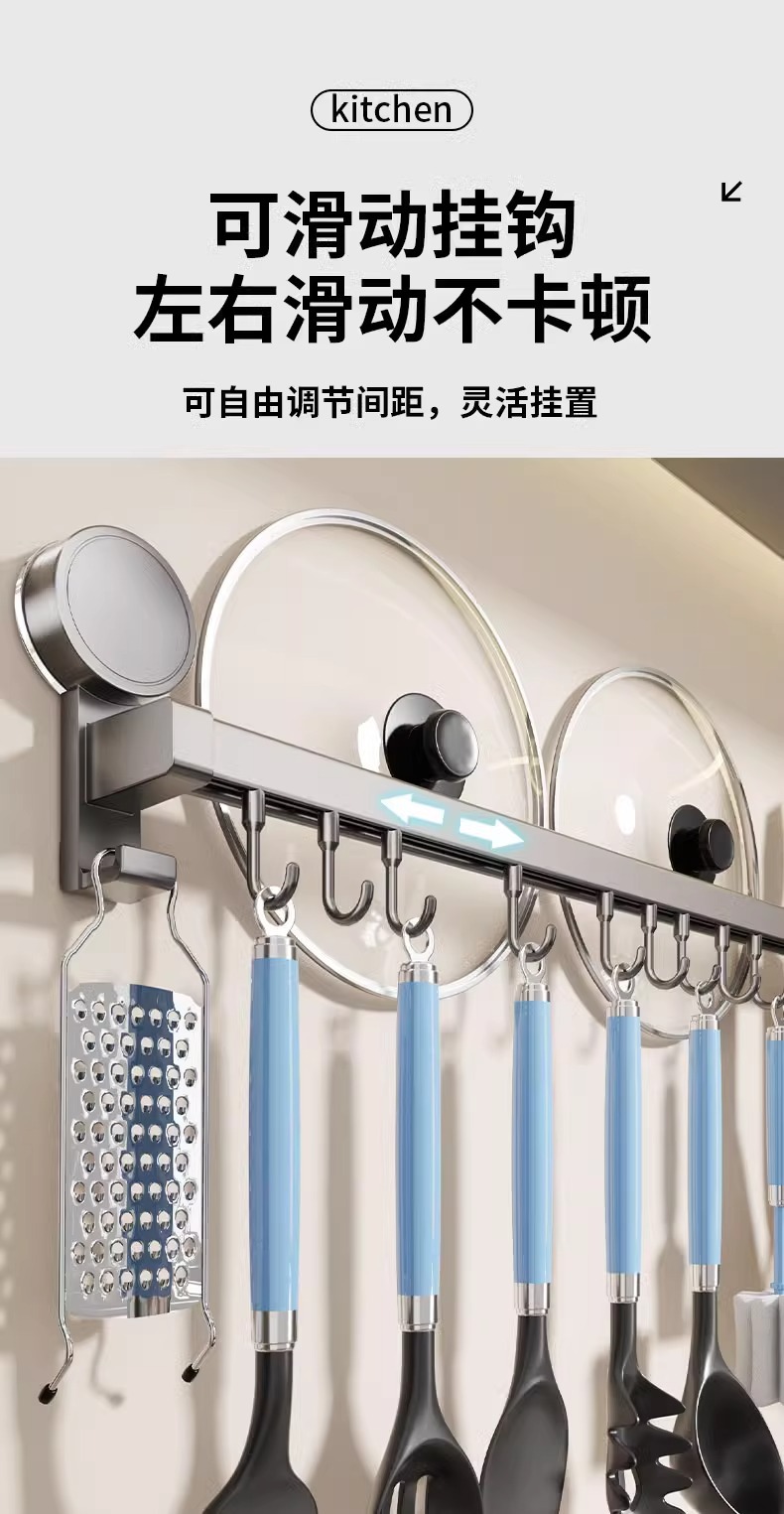 석션 컵 주방 후크 펀치없는 교수형 막대 뚜껑 보관 랙 행 후크 스포블 스푼 칼 저장 랙 다기능