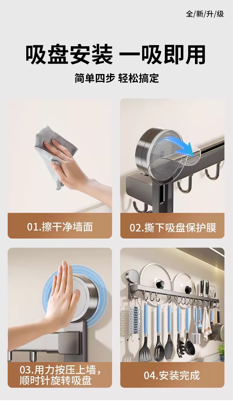 • [흡착컵 모델] 단극 30cm 후크 6개(냄비 뚜껑 수납 가능)