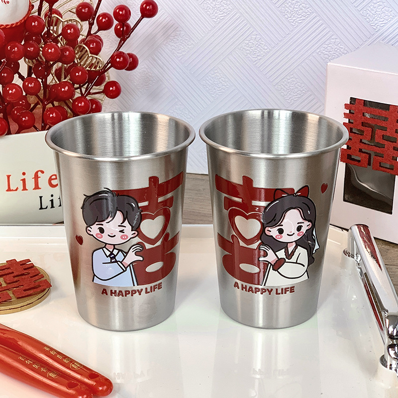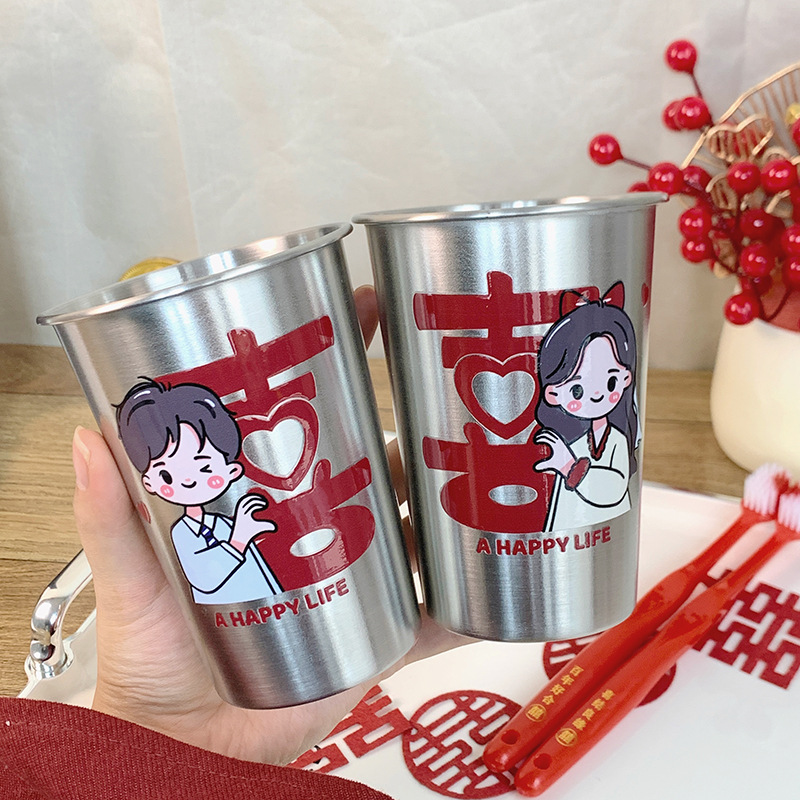 웨딩 동반 스테인레스 스틸 마우스 워시 컵 세트 홈 웨딩 가족 높은 가치 워시 칫솔 컵 페어