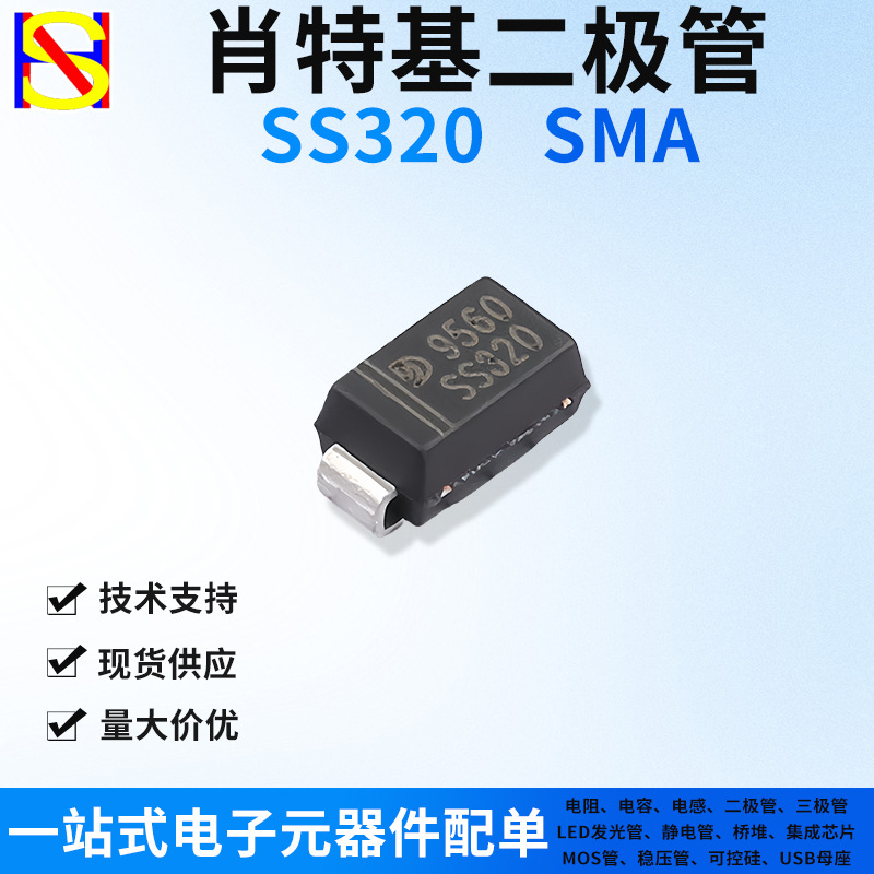 SS320贴片肖特基二极管SMA SR3200 3A/200V一站式电子元器件BOM配单