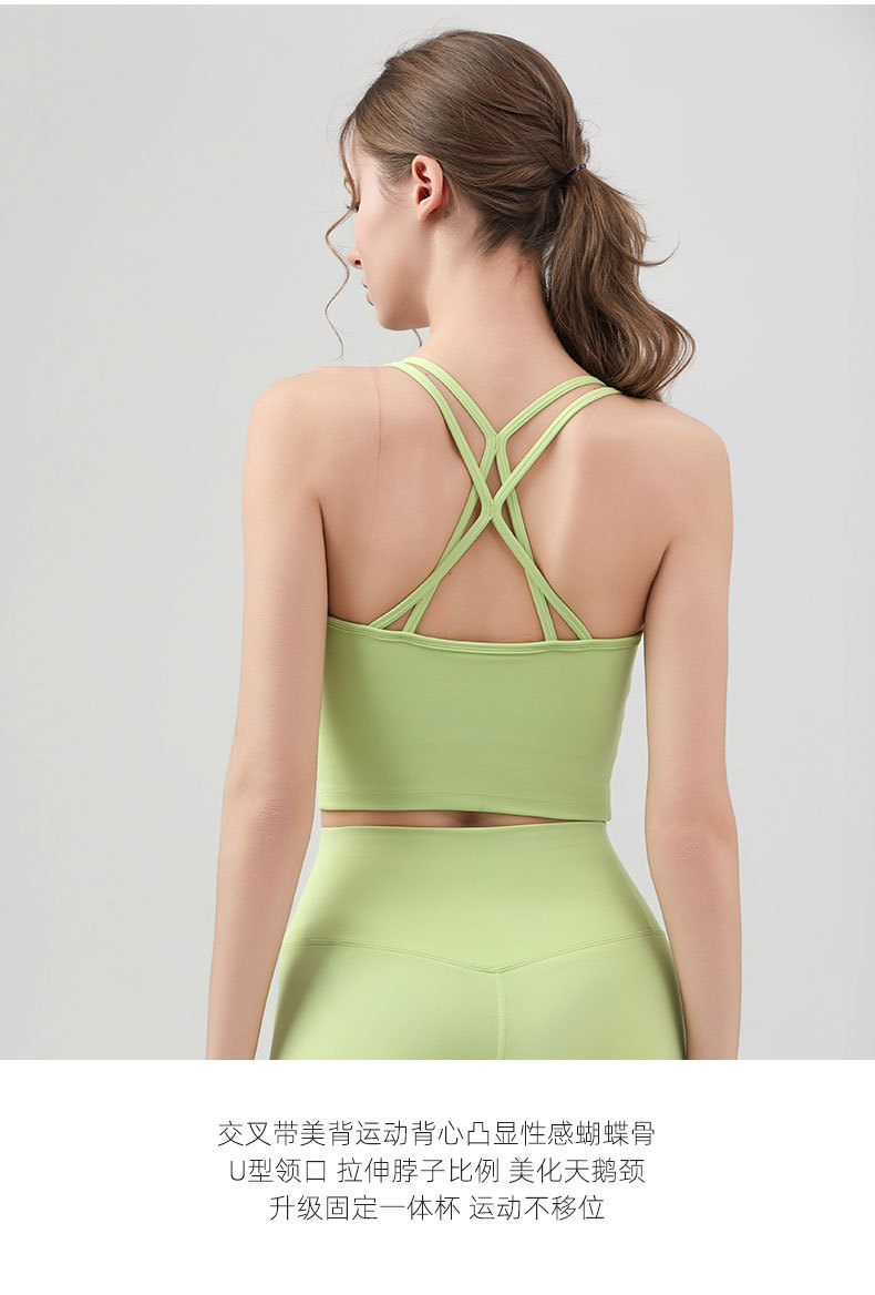 알몸 요가 조끼 여성 크로스 백 스포츠 속옷 피트니스 요가 의류 탑 통합 가슴 패드 스포츠 브라