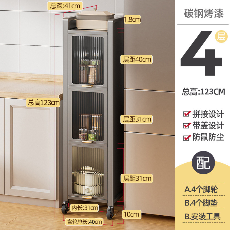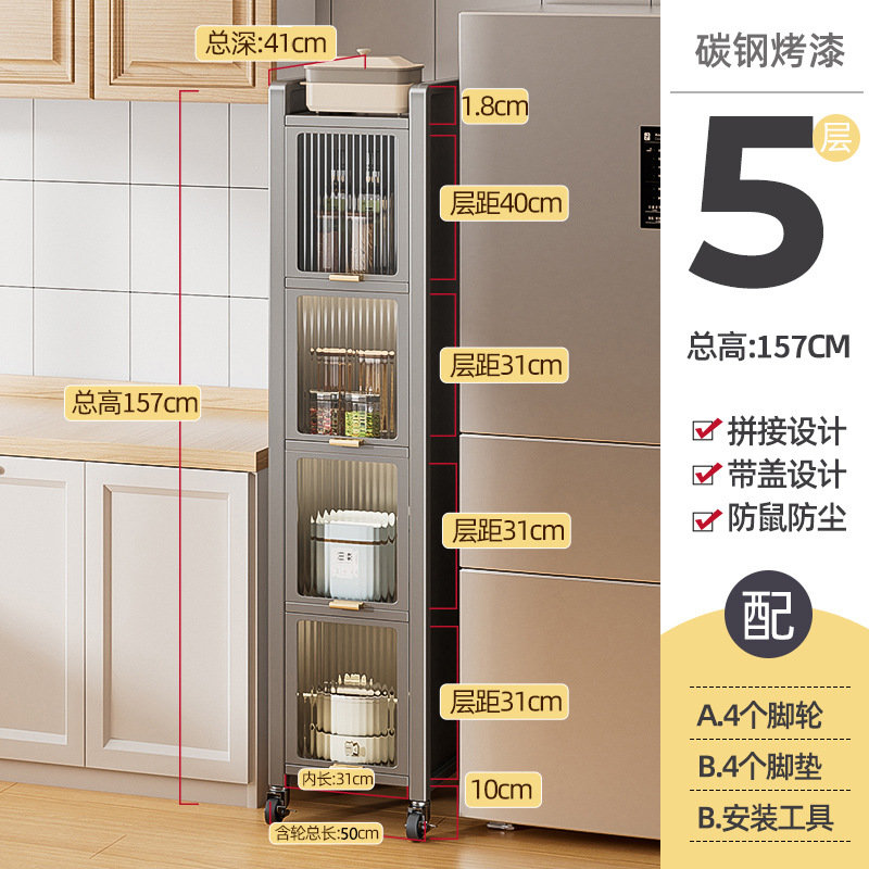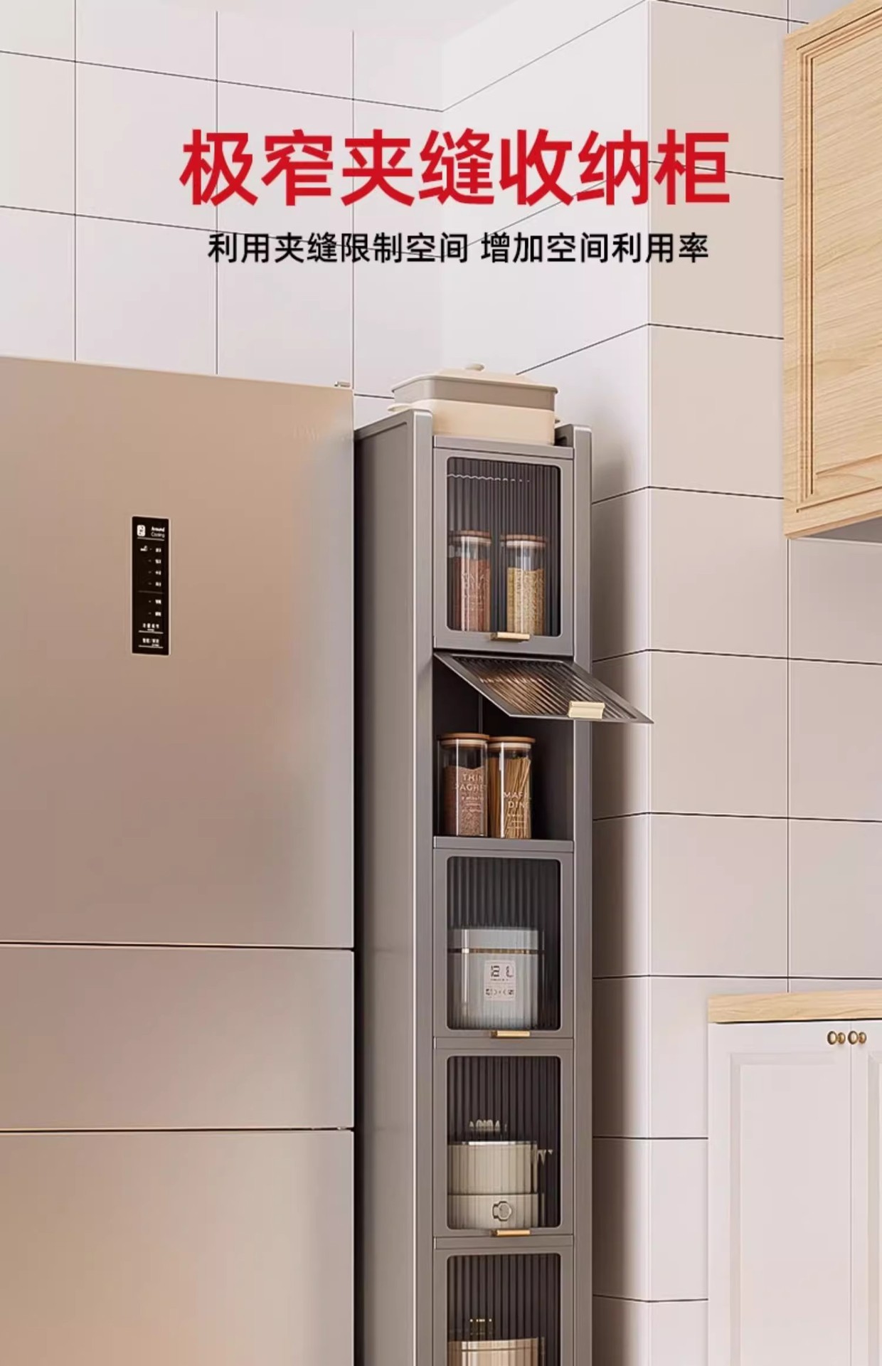 매우 좁은 갭 스토리지 랙 주방 바닥 다층 갭 냉장고 측면 캐비닛 저장 다기능 스토리지 캐비닛스토어 가기