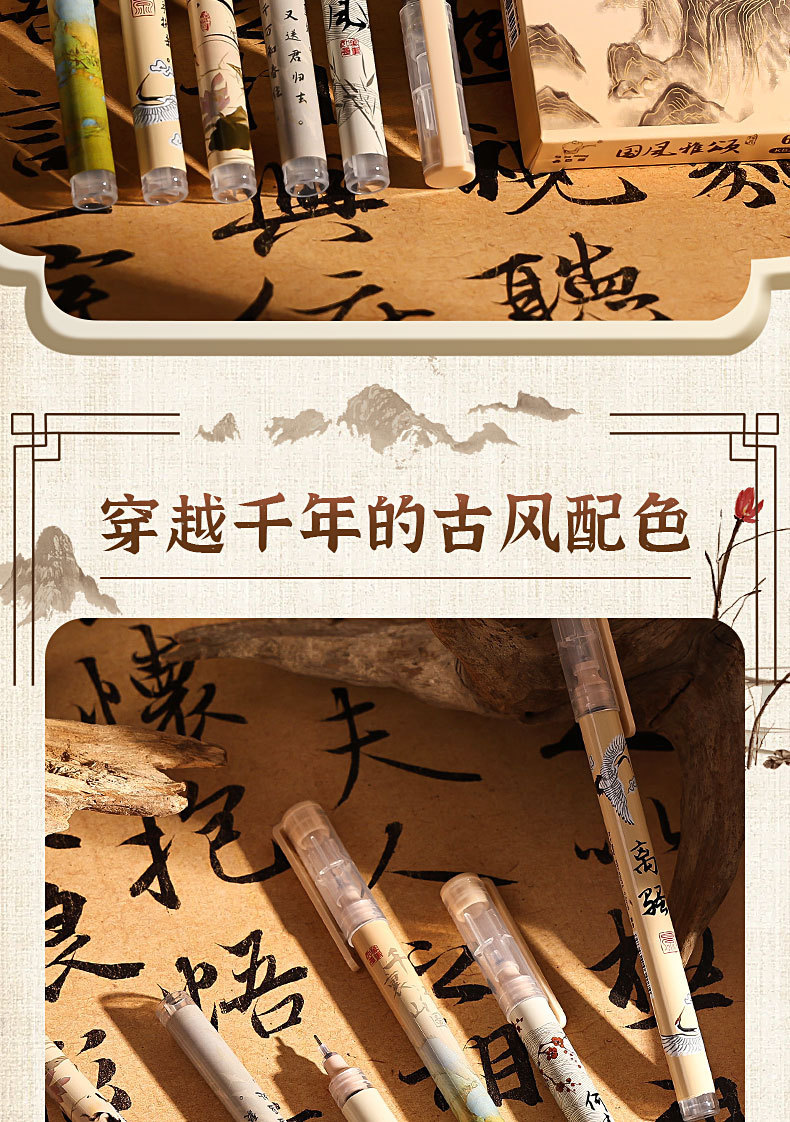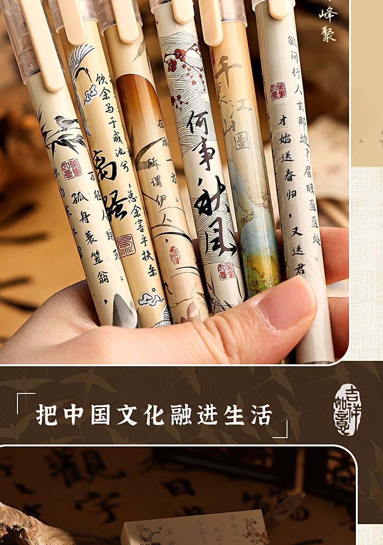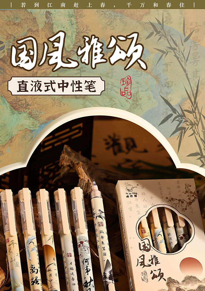 考试学生古风速干直液式走珠笔中性笔刷题笔0.5黑笔笔芯顺滑水笔