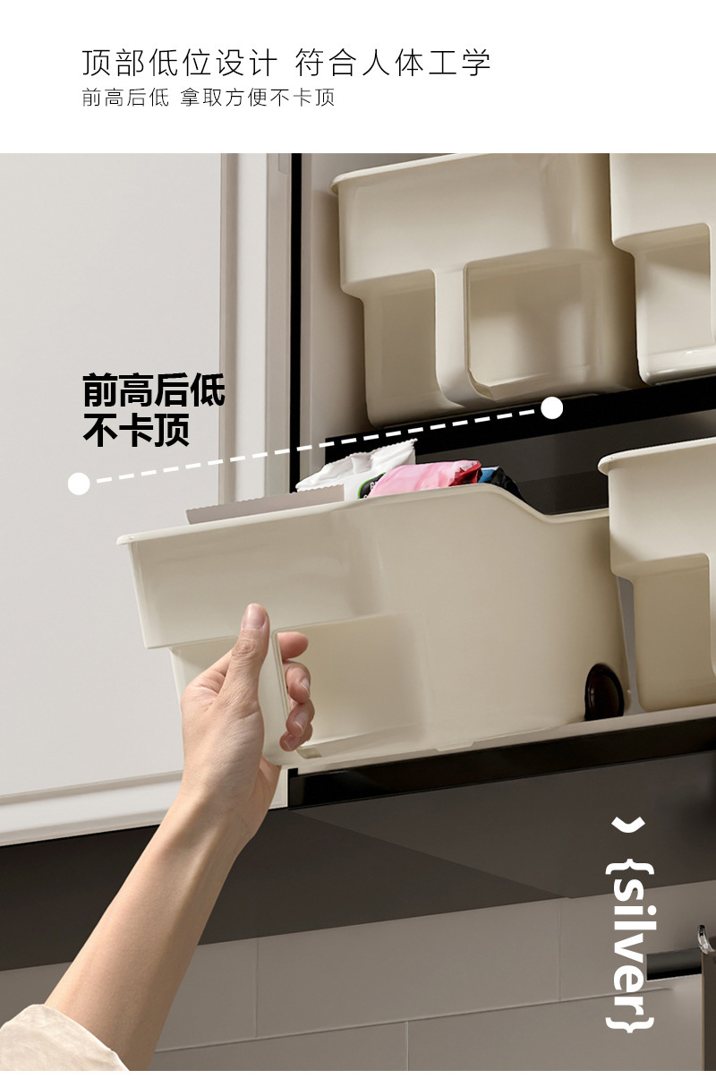 손잡이 간식이있는 주방 높은 교수형 캐비닛 저장 상자 잡화는 보관 깊은 캐비닛 캐비닛 높은 저장 바구니를 구성합니다.스토어 가기
