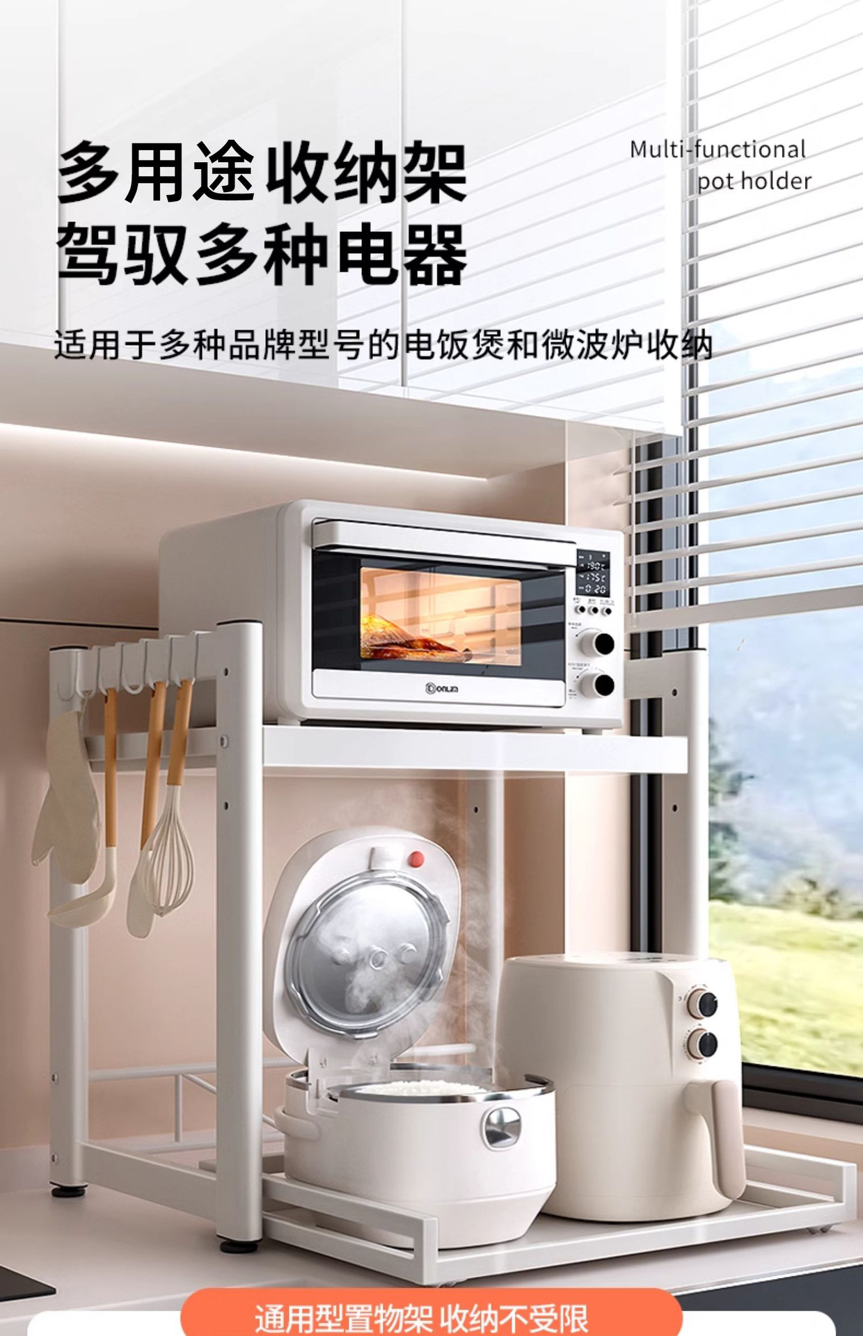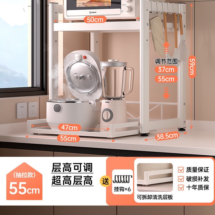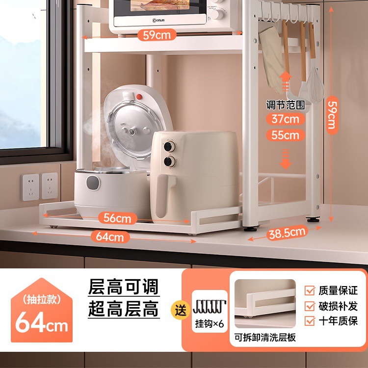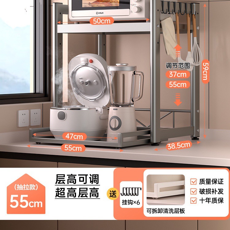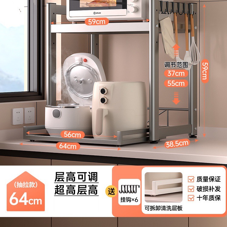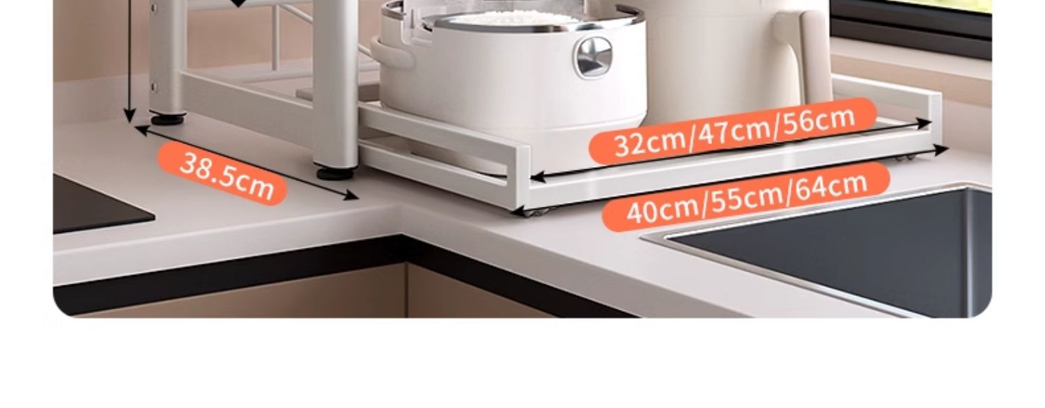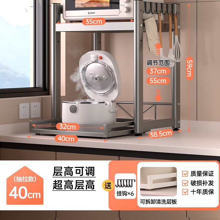 가정용 주방 전자 레인지 저장 랙 스토리지 랙 조정 가능한 높이 풀 아웃 카운터 탑 쌀밥솥 오븐 랙