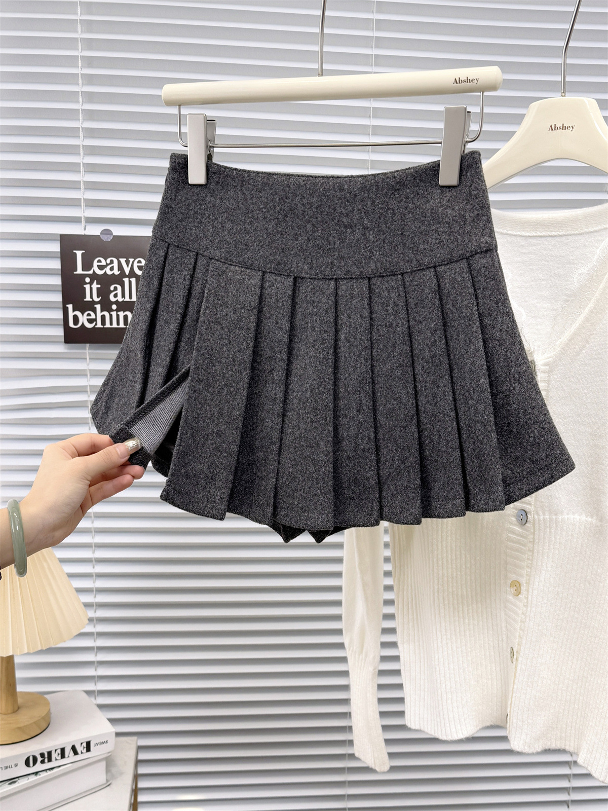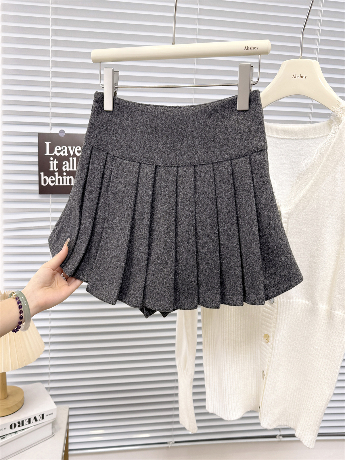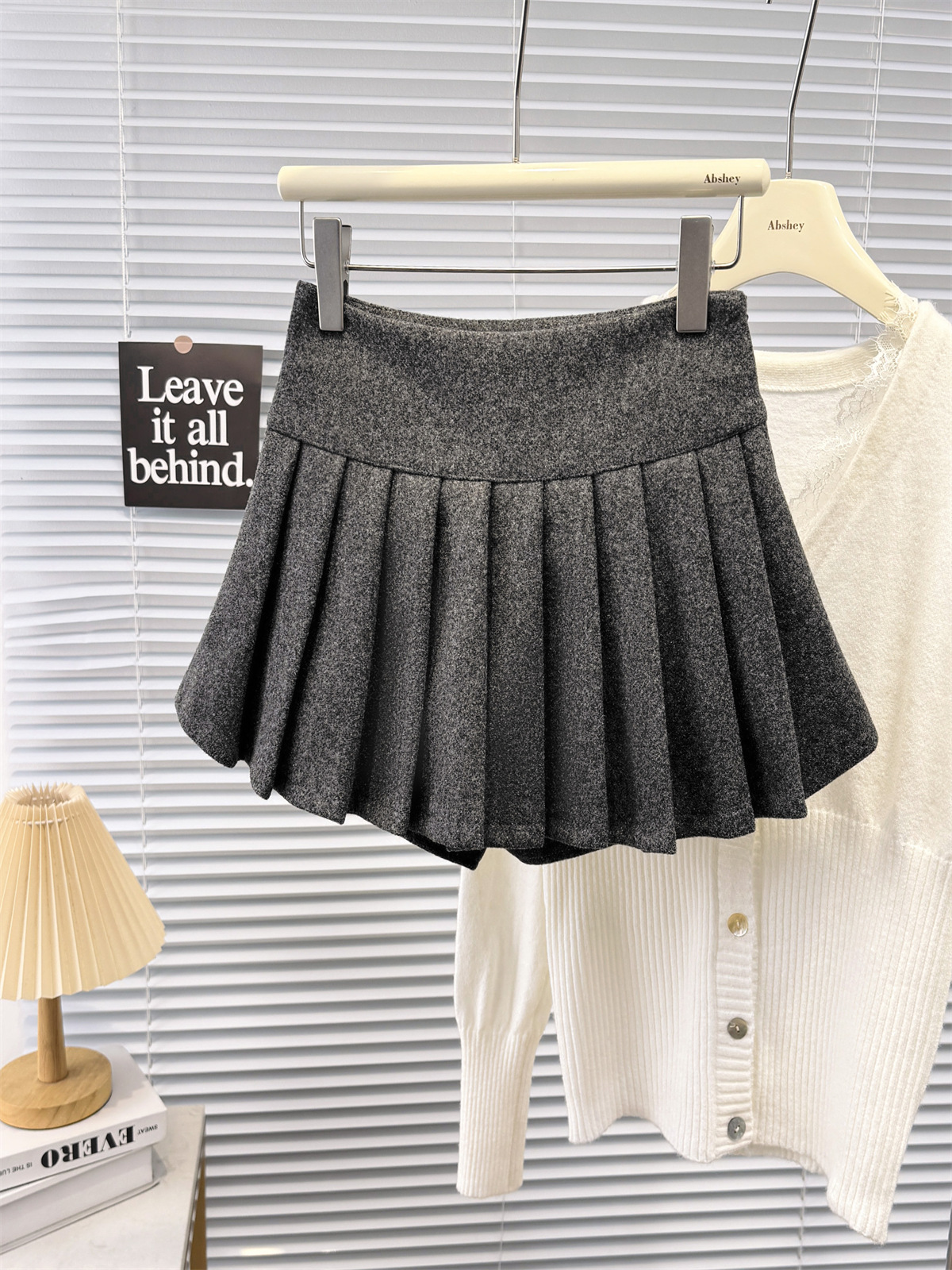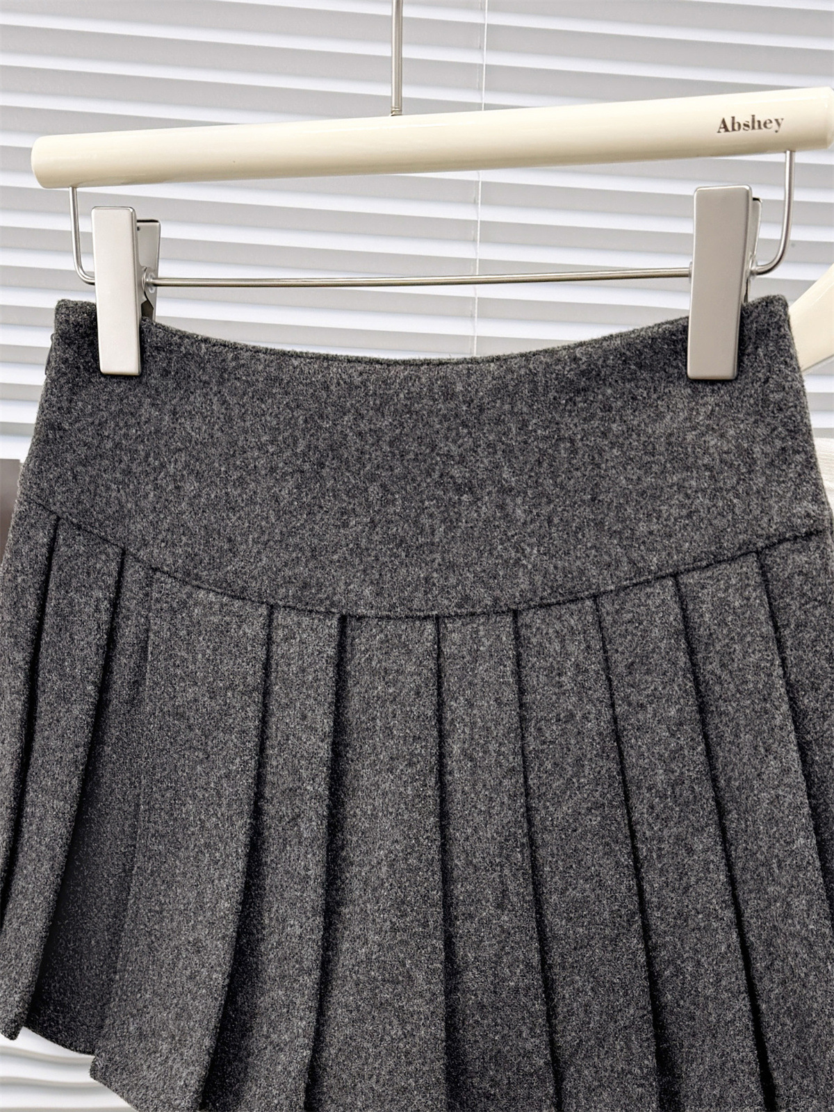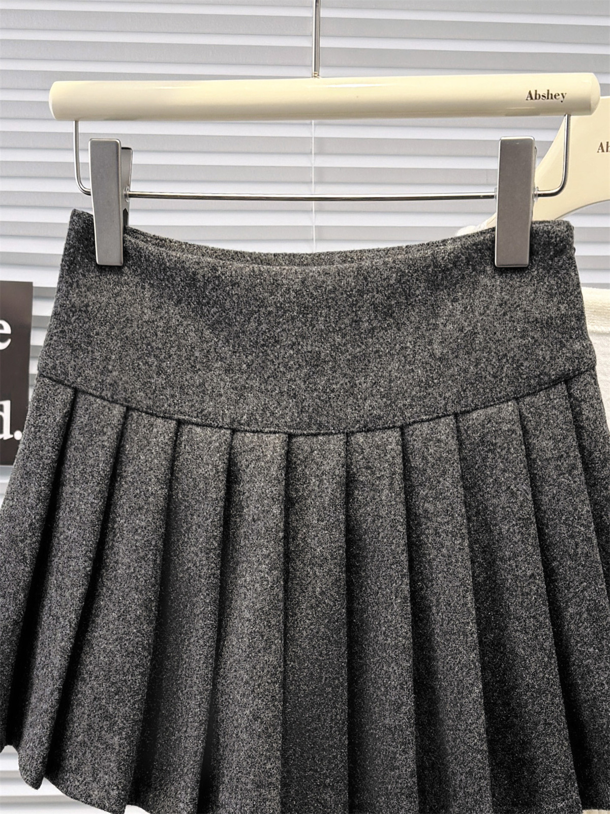 리얼 샷 작은 회색 모직 주름 치마 캐주얼 여성 높은 허리 스파이스 소녀 섹시한 안티 더스키 9299 스커트