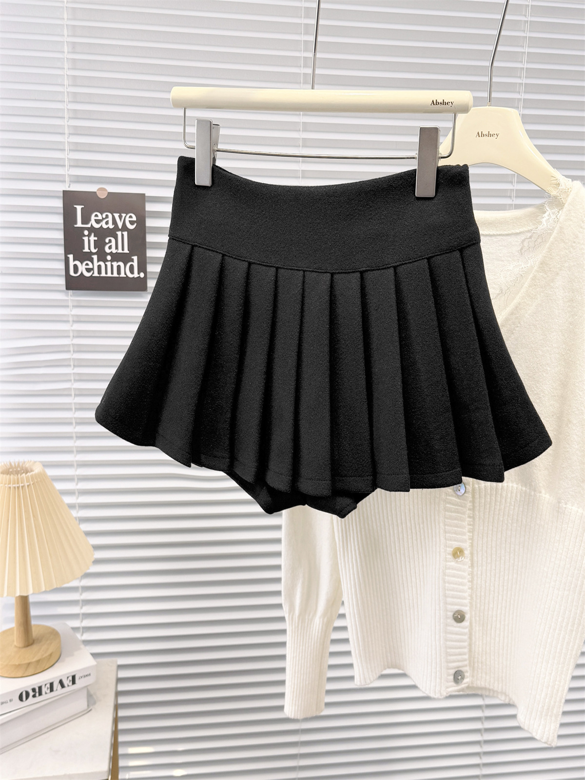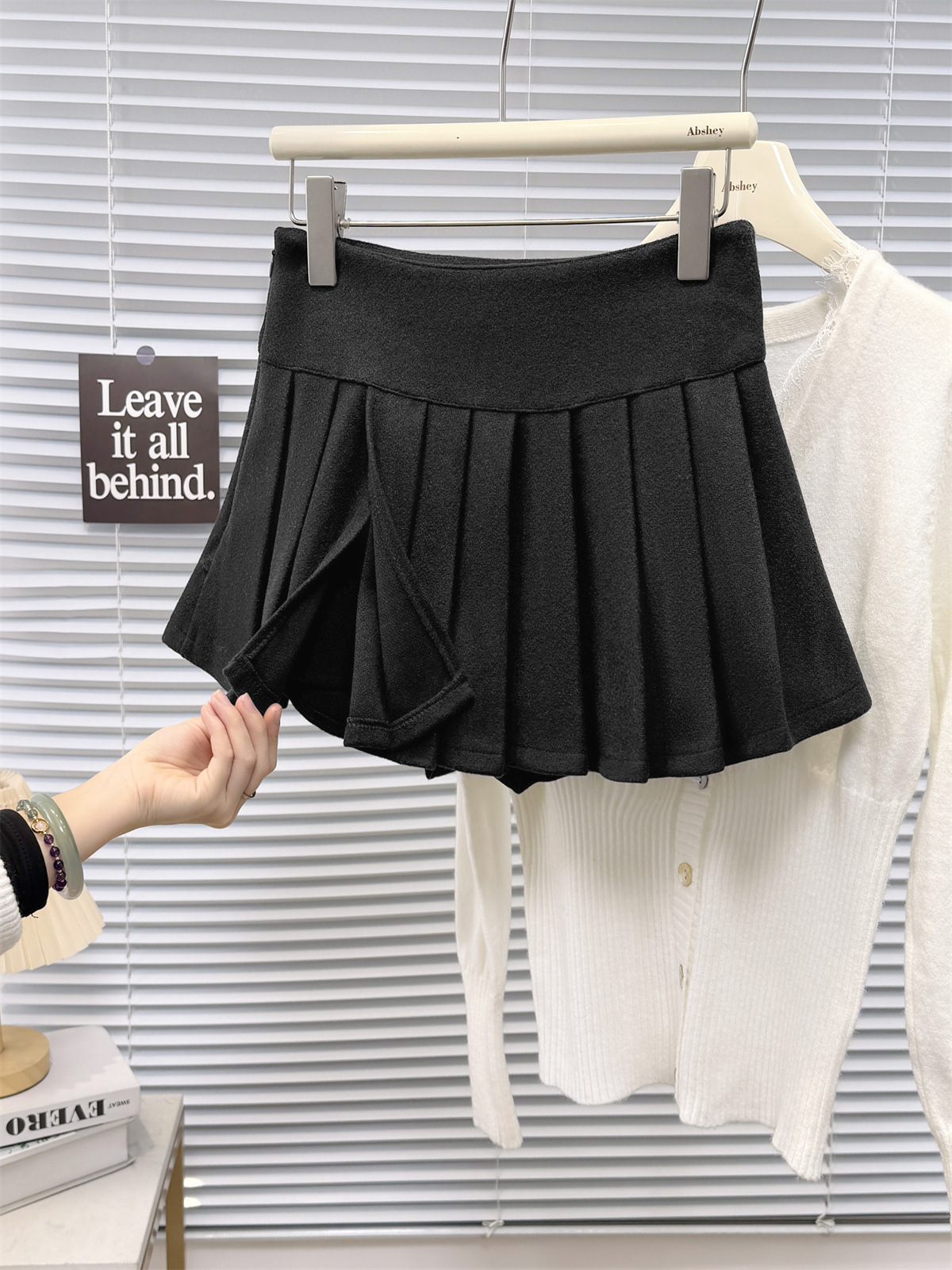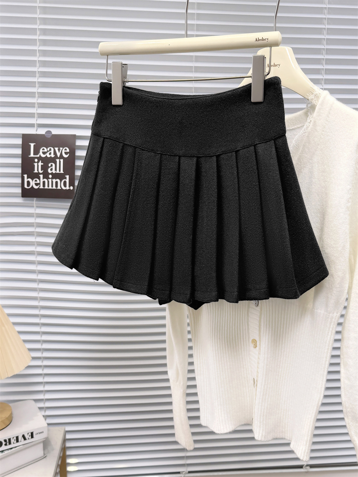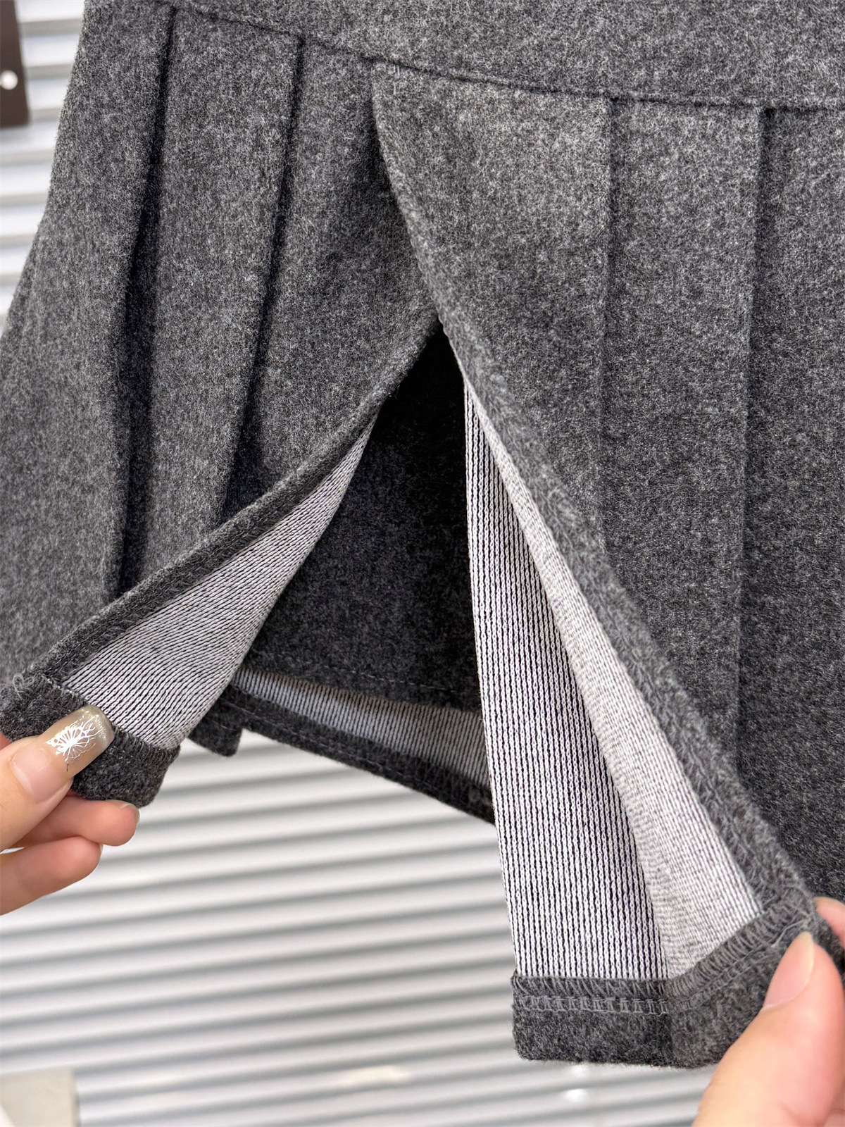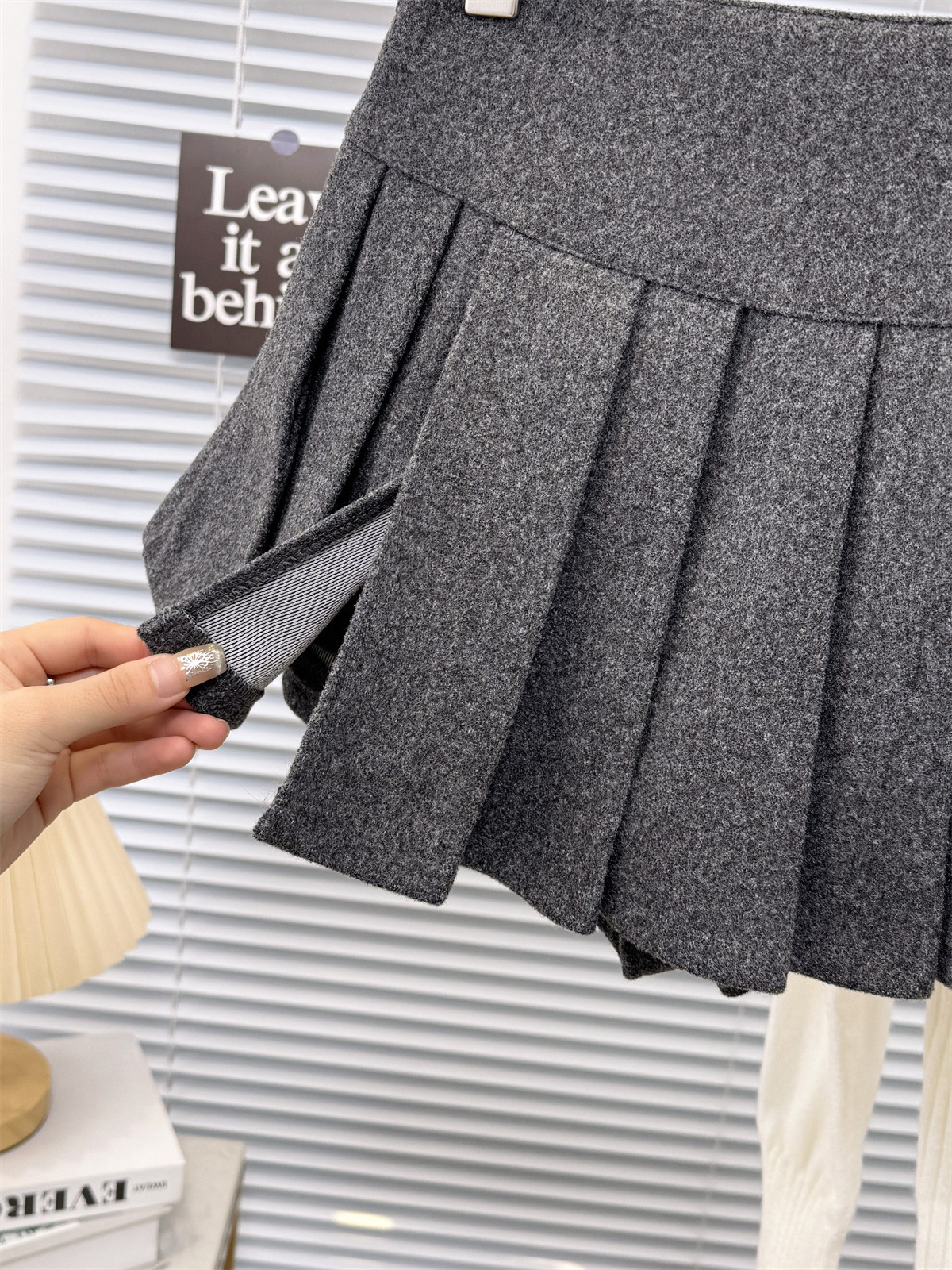 리얼 샷 작은 회색 모직 주름 치마 캐주얼 여성 높은 허리 스파이스 소녀 섹시한 안티 더스키 9299 스커트