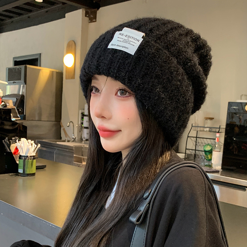 새로운 가을과 겨울 양모 스택 모자 여성의 큰 머리 모든 경기 캐주얼 콜드 캡 따뜻한 커플 귀 보호 니트 캡