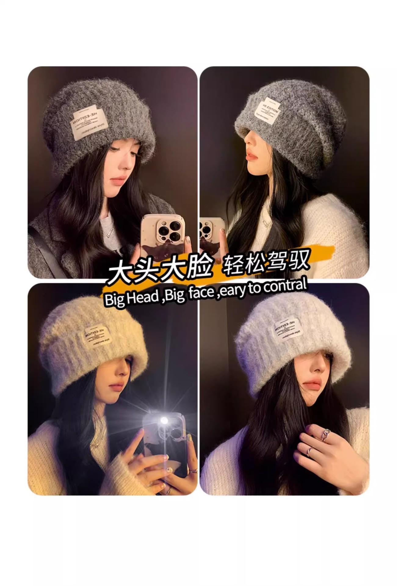 새로운 가을과 겨울 양모 스택 모자 여성의 큰 머리 모든 경기 캐주얼 콜드 캡 따뜻한 커플 귀 보호 니트 캡스토어 가기