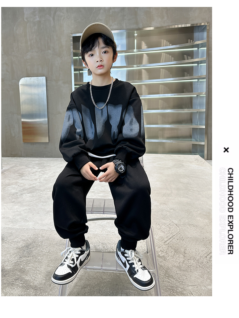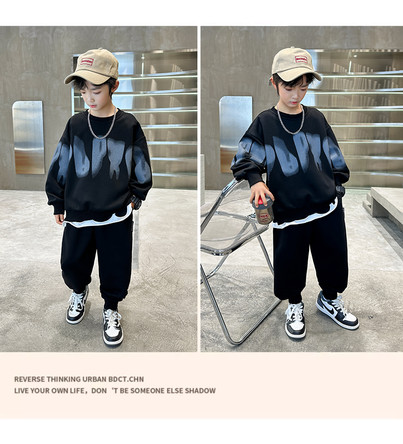 남아 가을 의류 세트 2025 신상 트렌디하고 멋진 아동복 가을 겨울용 스웨트셔츠 멋스럽고 패셔너블한 플리스 운동복스토어 가기