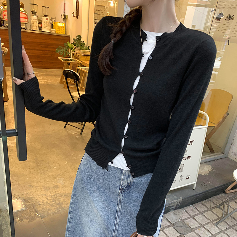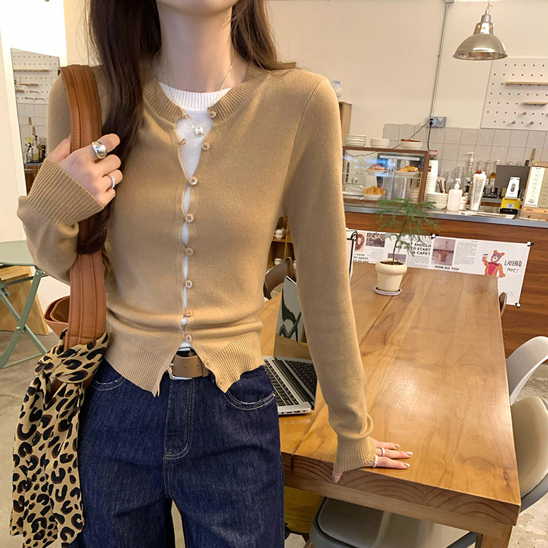 저렴한 유럽 긴 소매 니트 울 코트 여성의 2025 년 새로운 가을과 겨울 프랑스 독특한 기질 얇은 탑