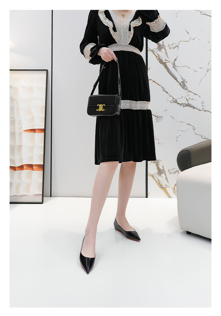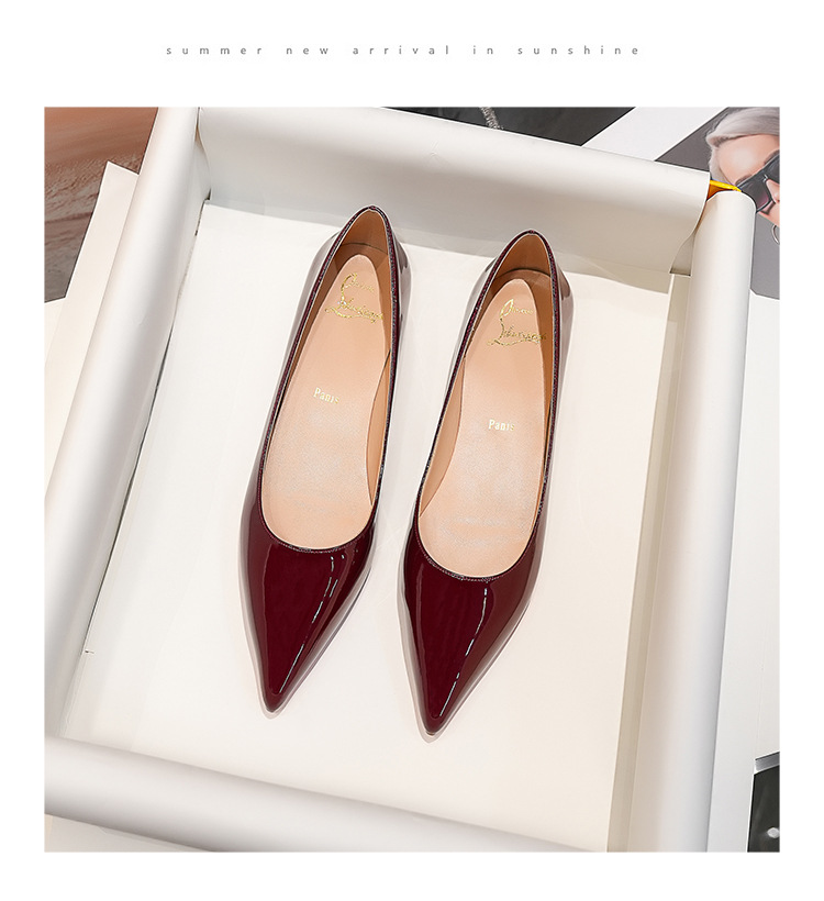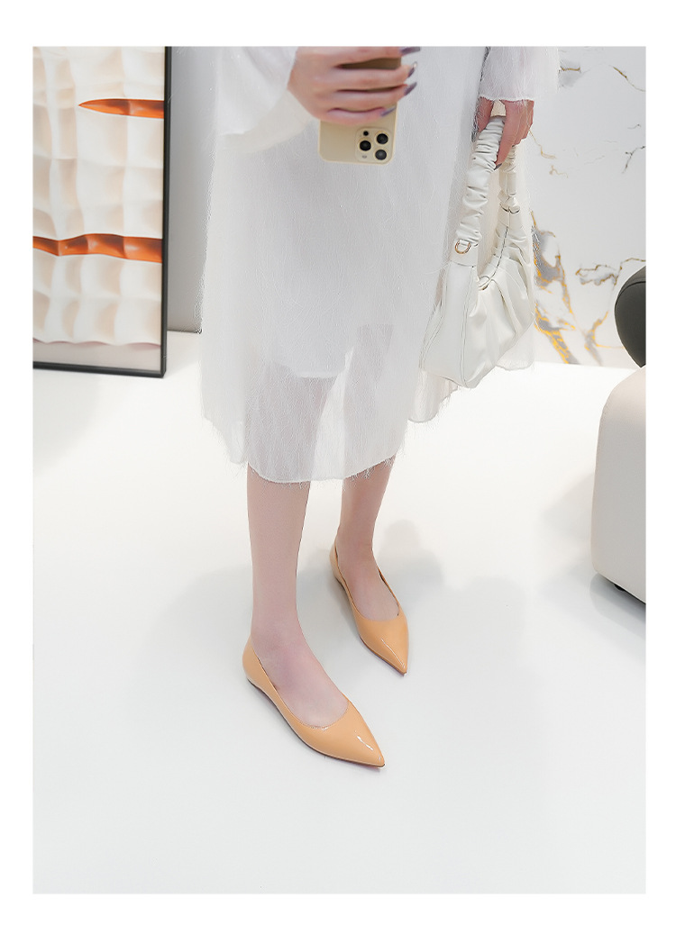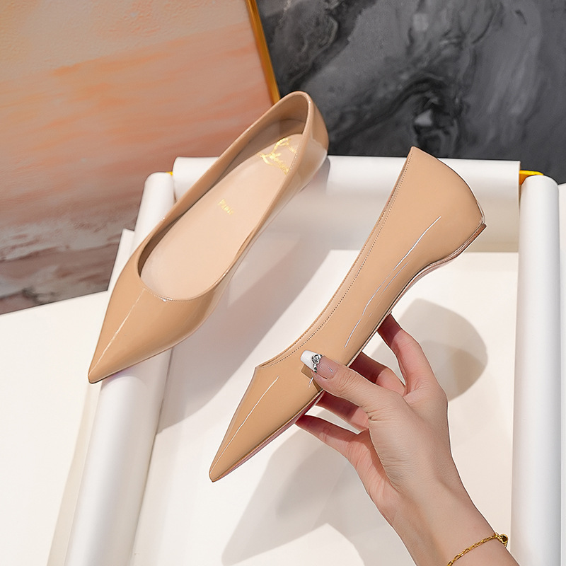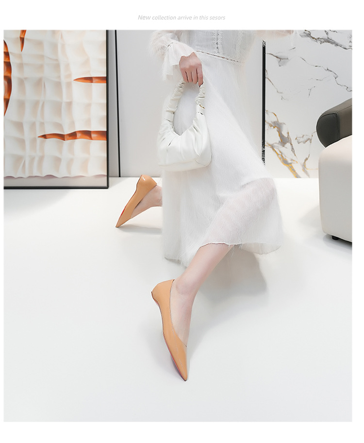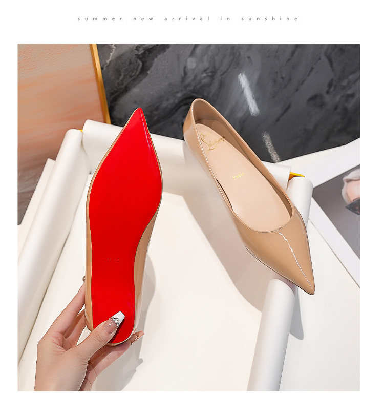 내부 키높이 신발, 포인티드 토 레드솔 플랫 슈즈, 2025 신상 프렌치 스타일 다용도 얕은 구두, 여성용 누드 컬러 오픈토 통근 슈즈스토어 가기