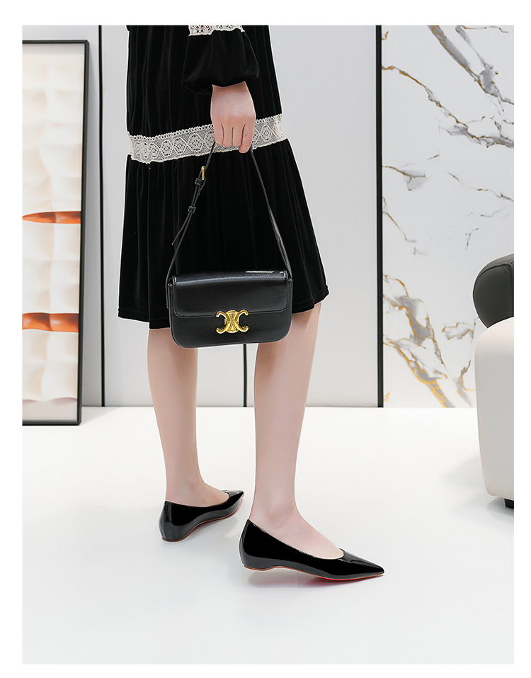 내부 키높이 신발, 포인티드 토 레드솔 플랫 슈즈, 2025 신상 프렌치 스타일 다용도 얕은 구두, 여성용 누드 컬러 오픈토 통근 슈즈