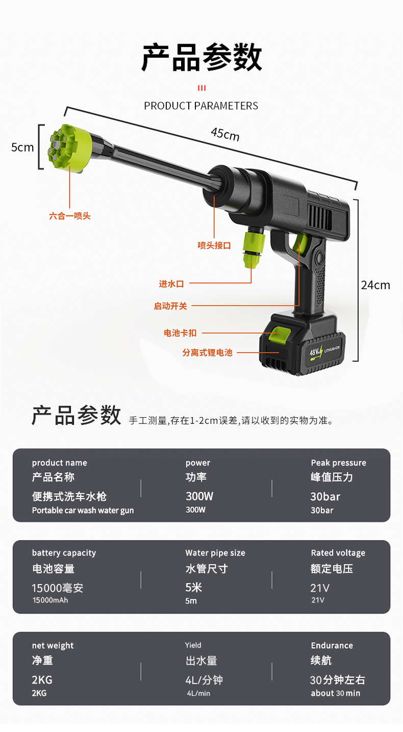 새로운 가정용 전기 자동차 세탁기 리튬 무선 충전 세차 물 총 고압 물 총 유물 전체 세트 도매