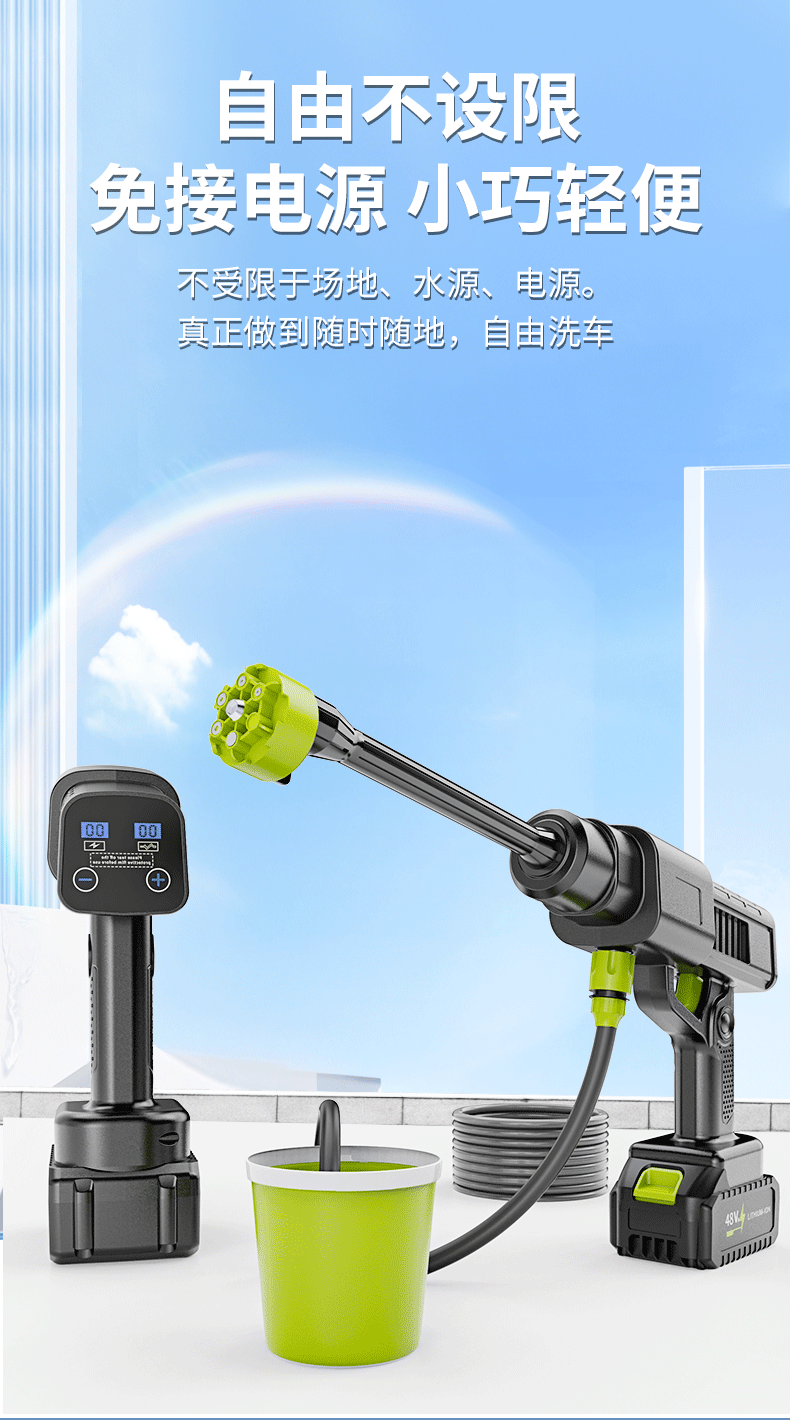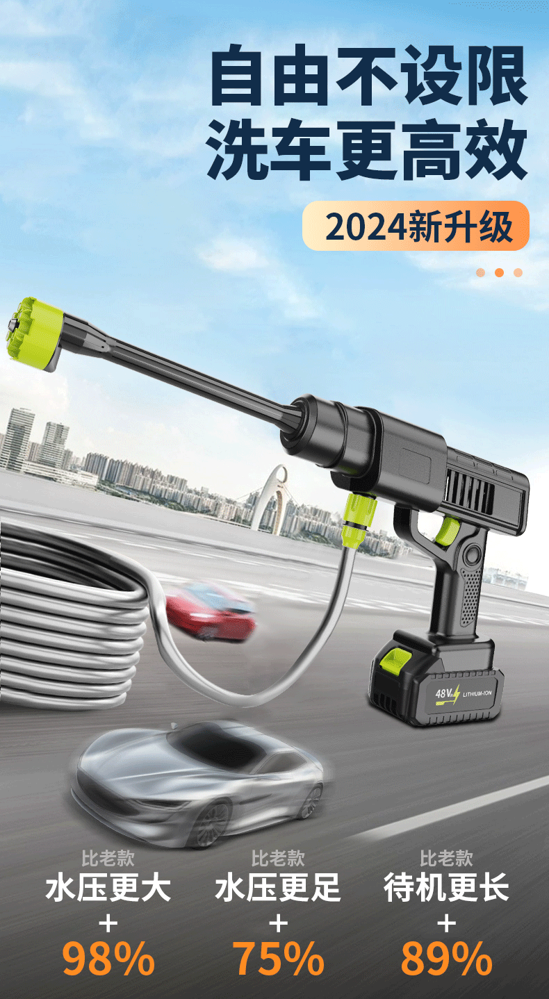 새로운 가정용 전기 자동차 세탁기 리튬 무선 충전 세차 물 총 고압 물 총 유물 전체 세트 도매스토어 가기