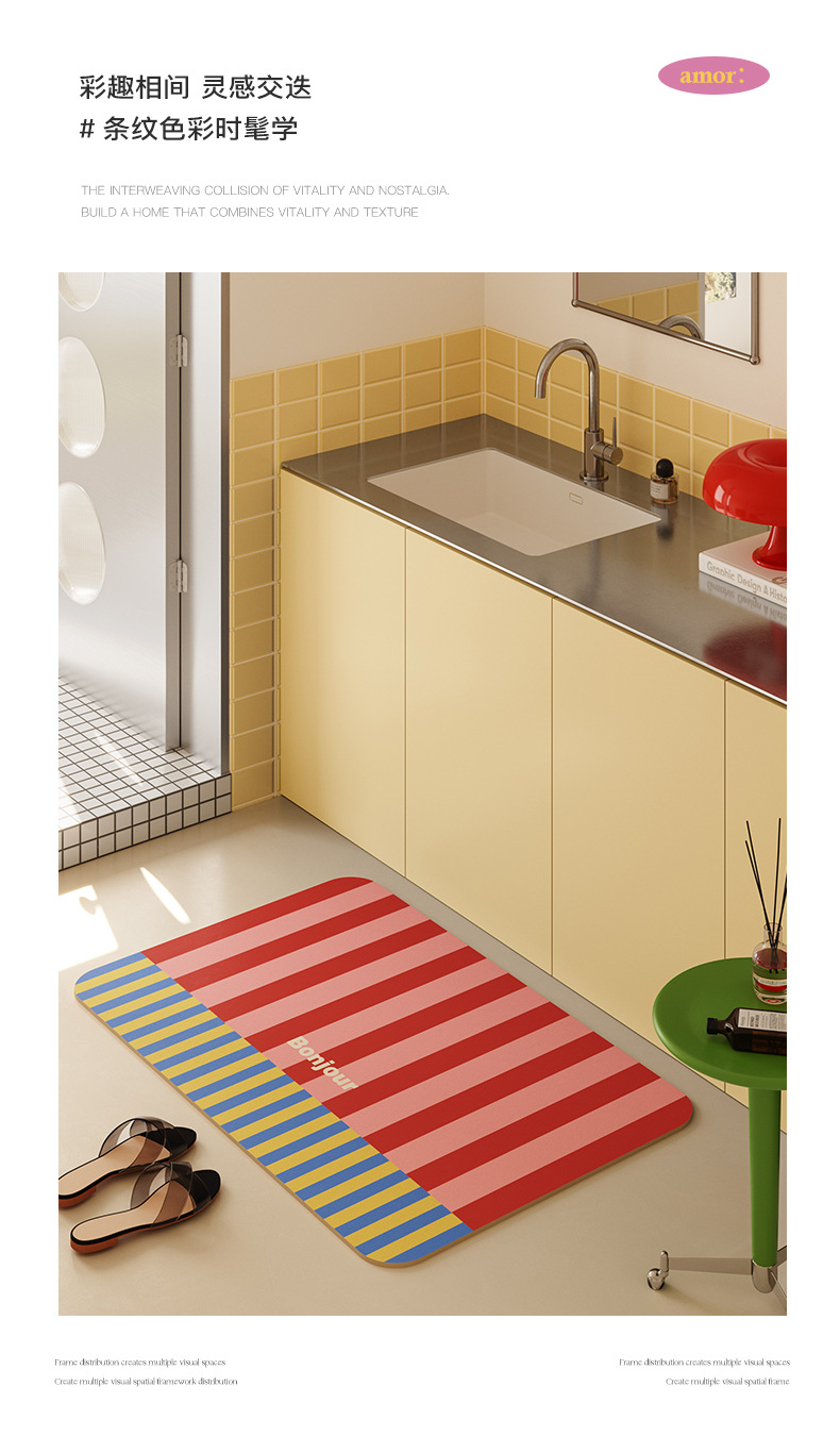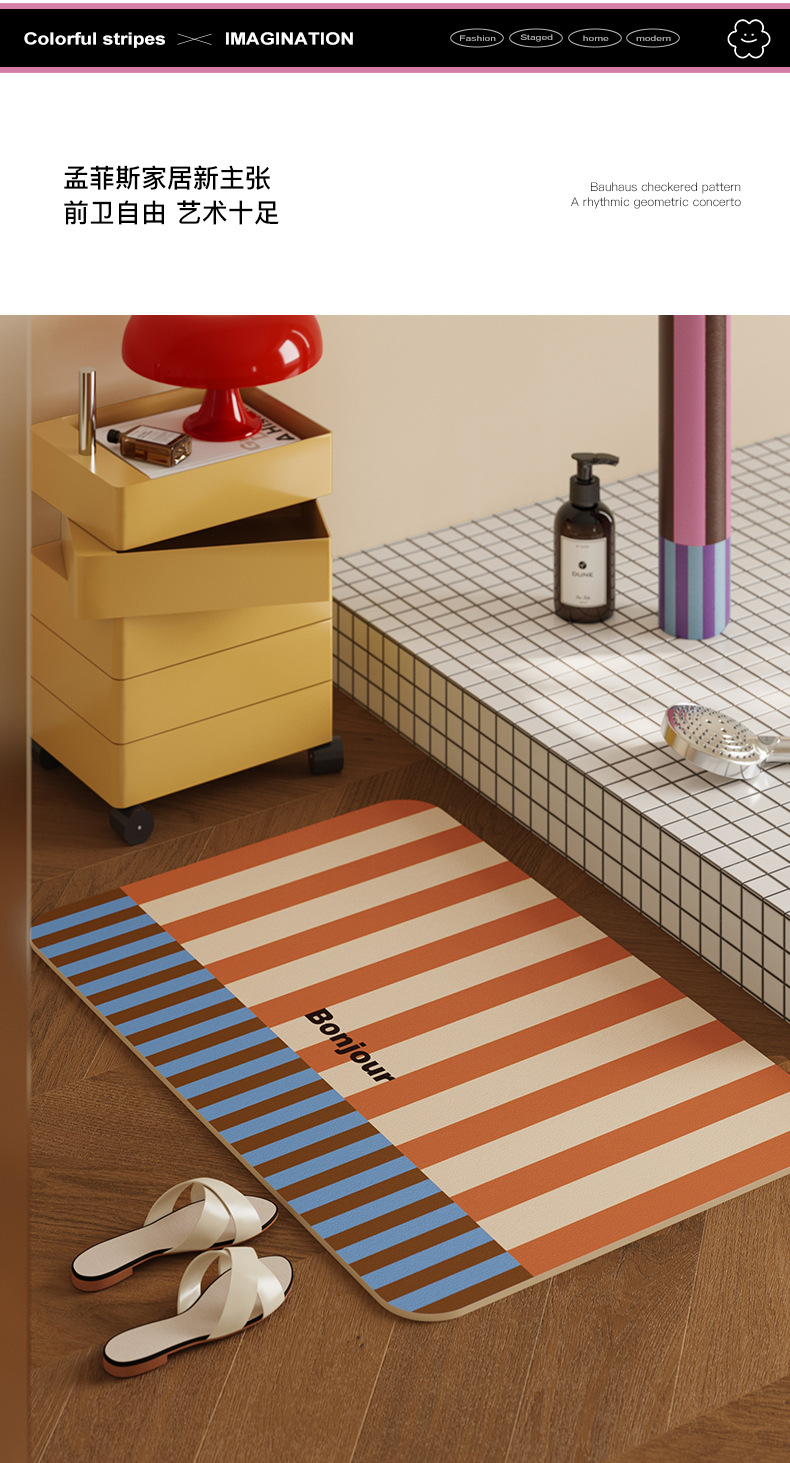 미국 레트로 디 아톰 머드 플로어 매트 욕실 흡수성 빠른 건조 풋 매트 화장실 도어 내마모성 미끄럼 방지 쉬운 케어 플로어 매트