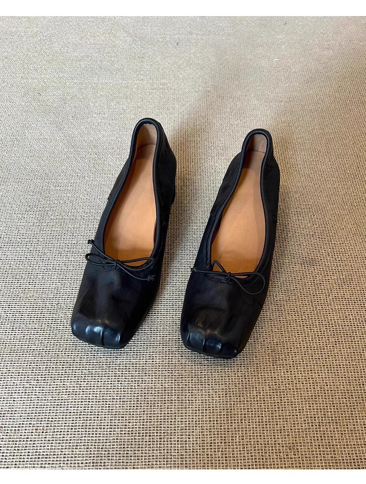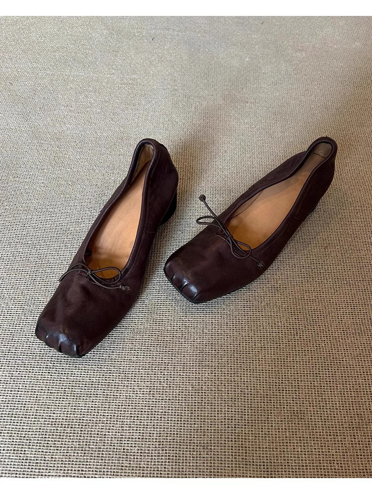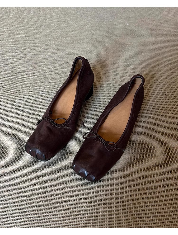 양가죽 버전 ~ 프랑스 복고풍 세련된 정품 가죽 드레스 스퀘어 돼지 코 두꺼운 힐 얕은 입 발레 신발 여성 신발