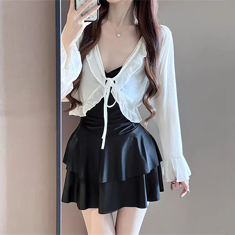 수영복 여성 원피스 투피스 세트 단색 보수적 인 슬림 소녀 달콤한 살은 배를 덮고 온천 수영복 도매스토어 가기