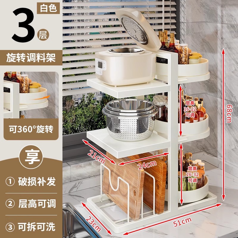 • 【360°회전식 양념통 + 냄비걸이] 51cm 3단 흰색, 높이 조절 가능