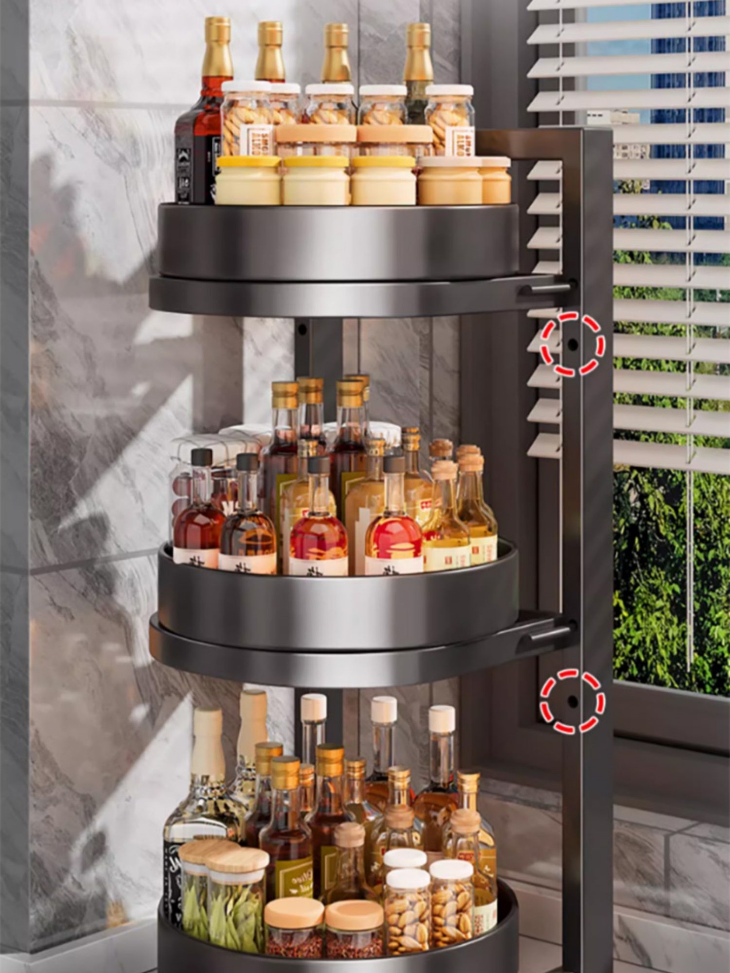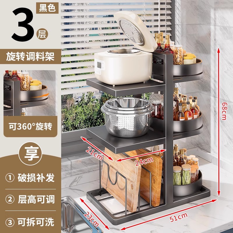 • 【360 ° 회전식 양념통 + 냄비걸이】 높이 조절이 가능한 51cm 3단