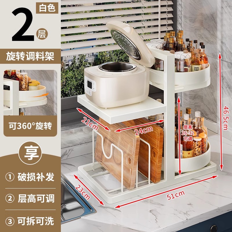 • 【360°회전식 양념통 + 냄비걸이] 51cm 2단 화이트, 높이 조절 가능