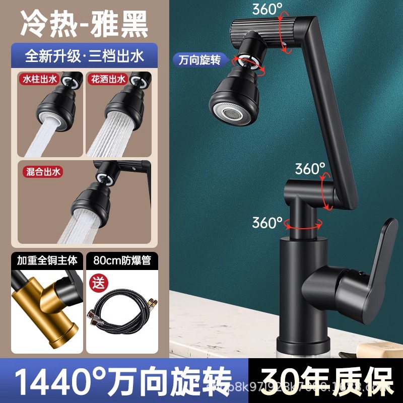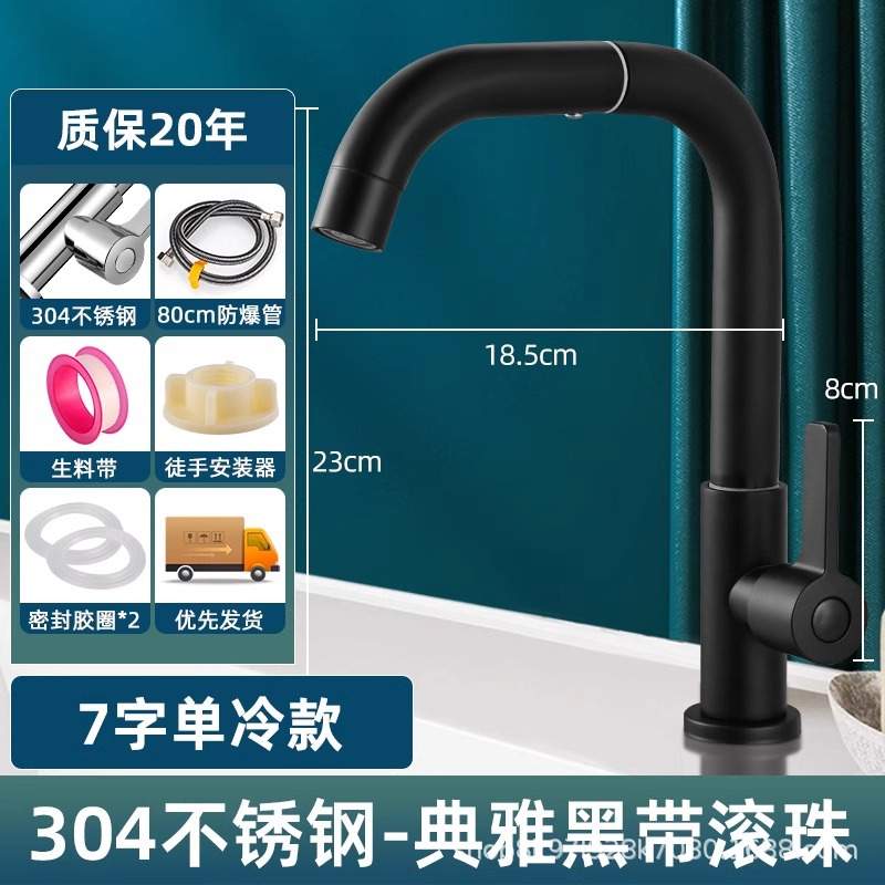 • [검은색 냉온수] 304 스테인레스 스틸 + 방폭 급수관*2