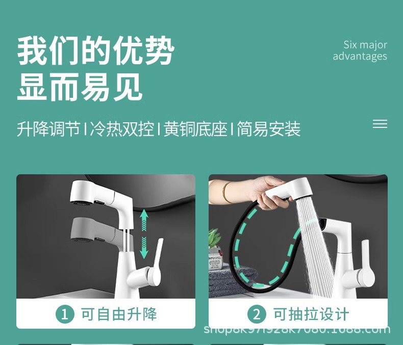 세면기 수도꼭지 뜨겁고 차가운 풀 아웃 세면대 풀 아웃 2 단계 욕실 욕실 카운터 세면대 이용도 리프팅