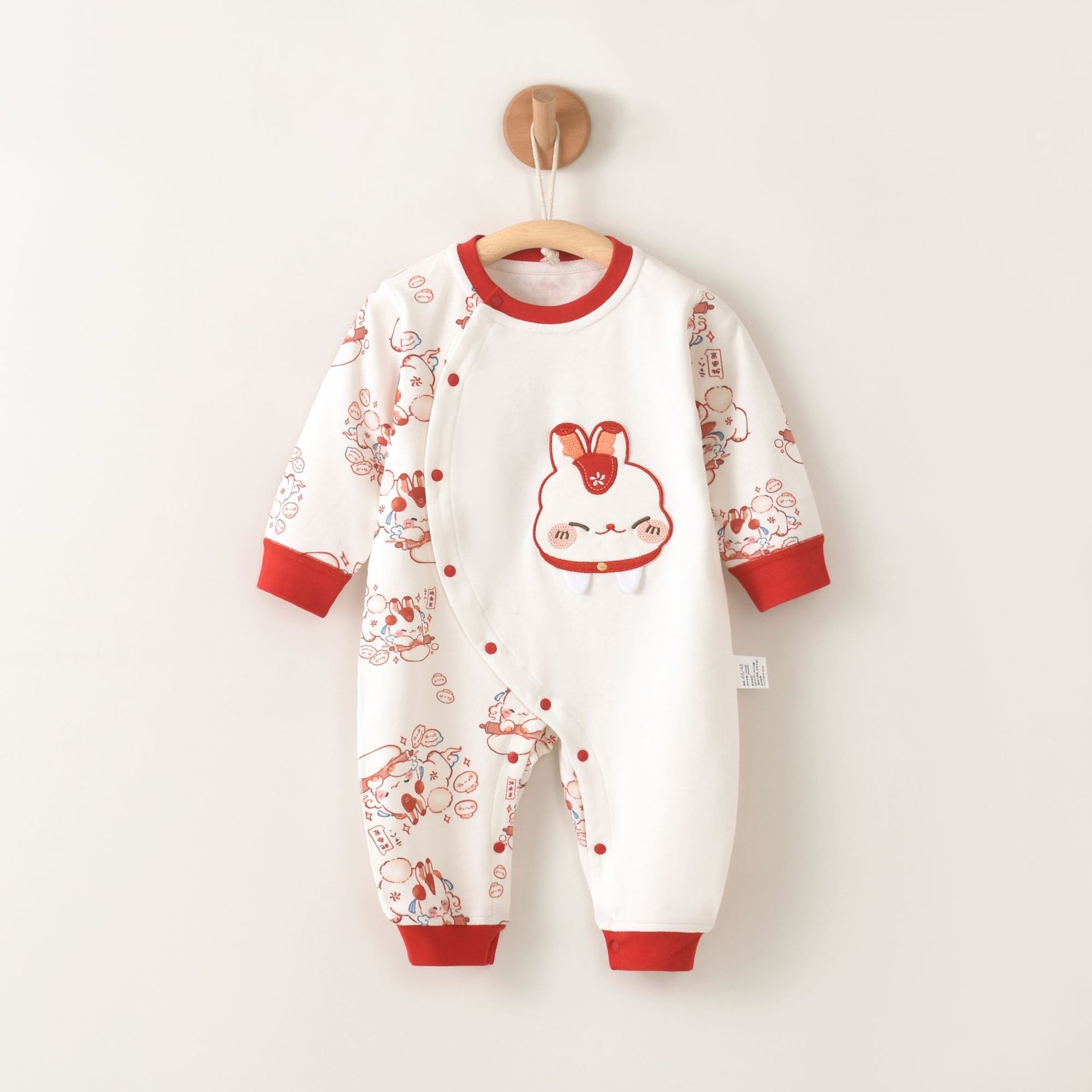 아기의 점프 수트 봄과 가을 순면 뼈없는 아기의 하퍼 긴 소매 세트 백일 세트 가방 세트 신생아 옷