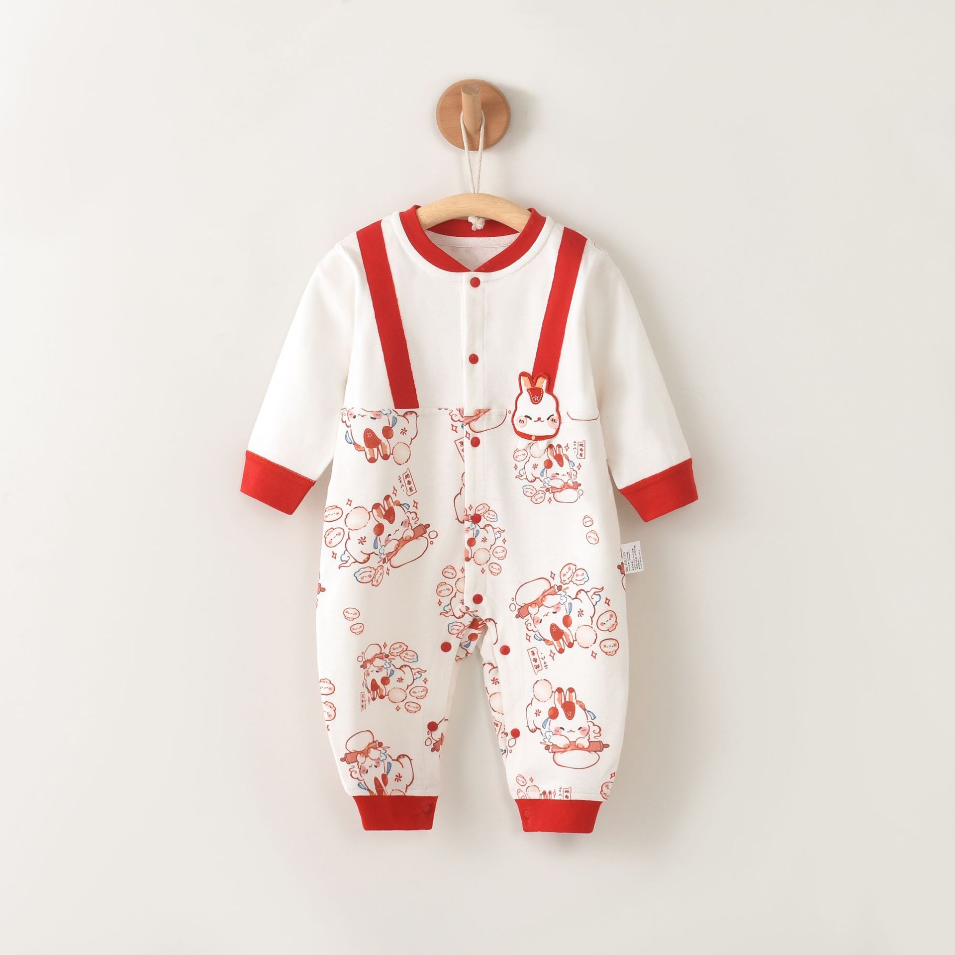 아기의 점프 수트 봄과 가을 순면 뼈없는 아기의 하퍼 긴 소매 세트 백일 세트 가방 세트 신생아 옷스토어 가기