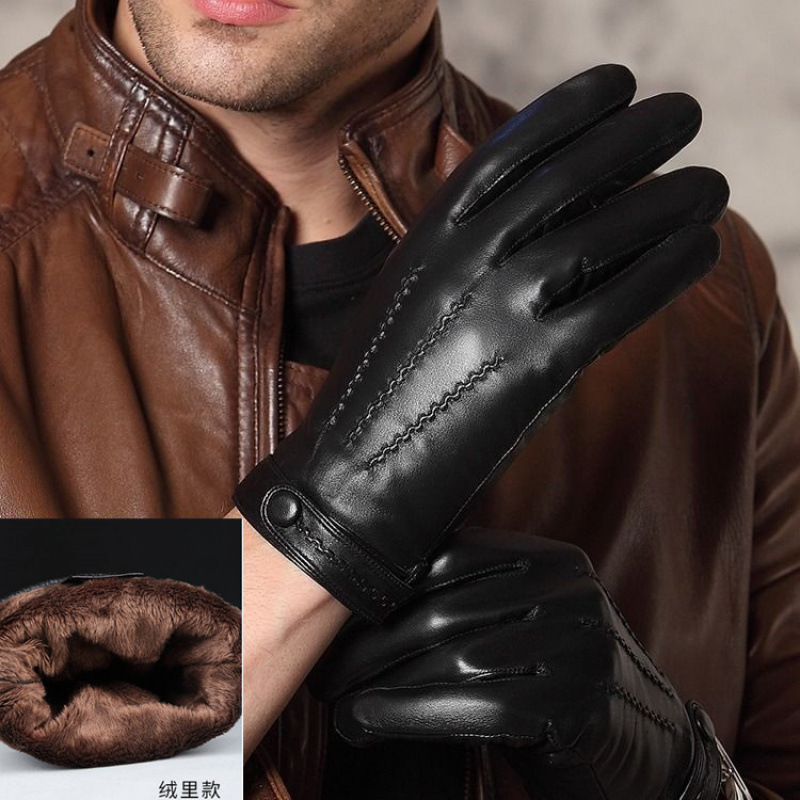 정품 가죽 장갑 남성용 겨울 터치 스크린 기모 얇은 플러스 사이즈 양가죽 장갑을 운전하는 두꺼운 따뜻한 가죽 장갑