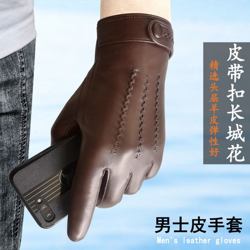 정품 가죽 장갑 남성용 겨울 터치 스크린 기모 얇은 플러스 사이즈 양가죽 장갑을 운전하는 두꺼운 따뜻한 가죽 장갑스토어 가기