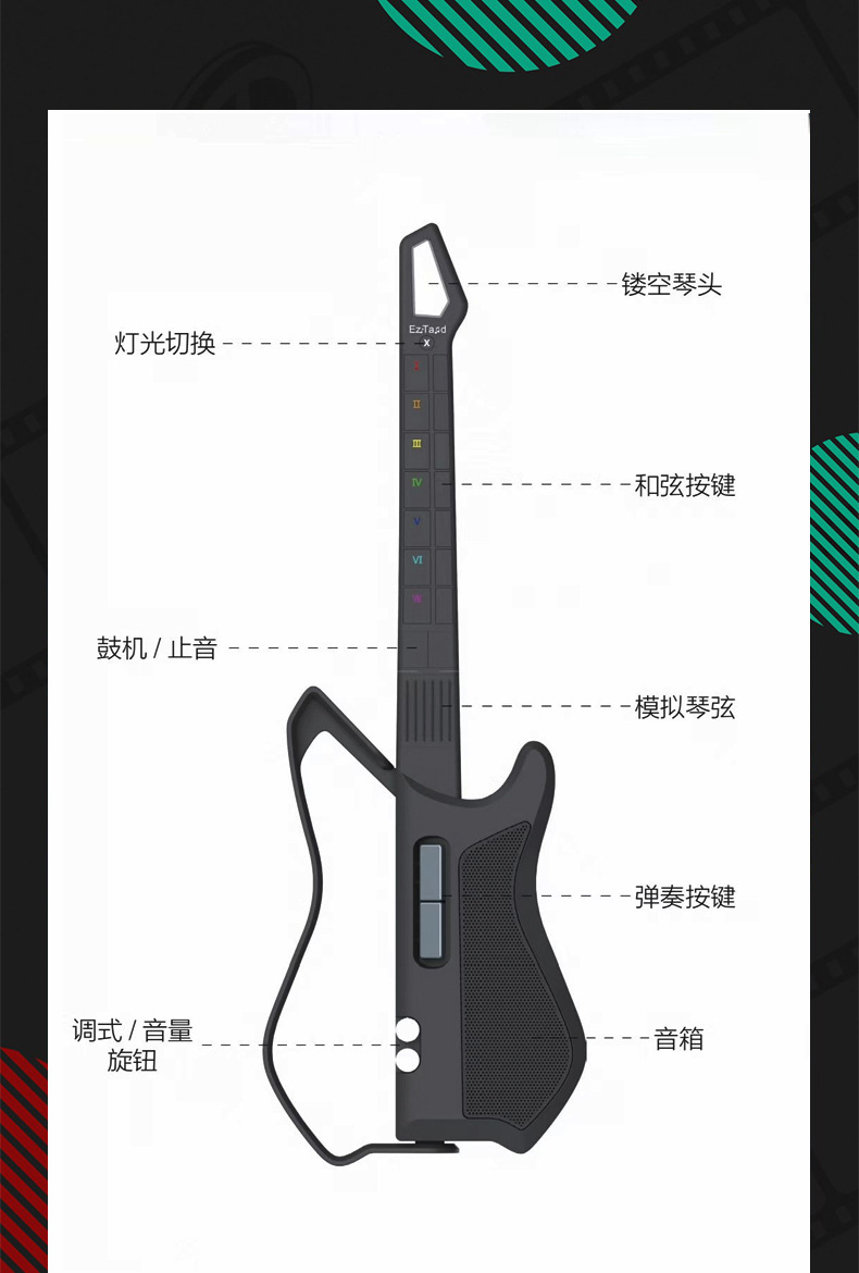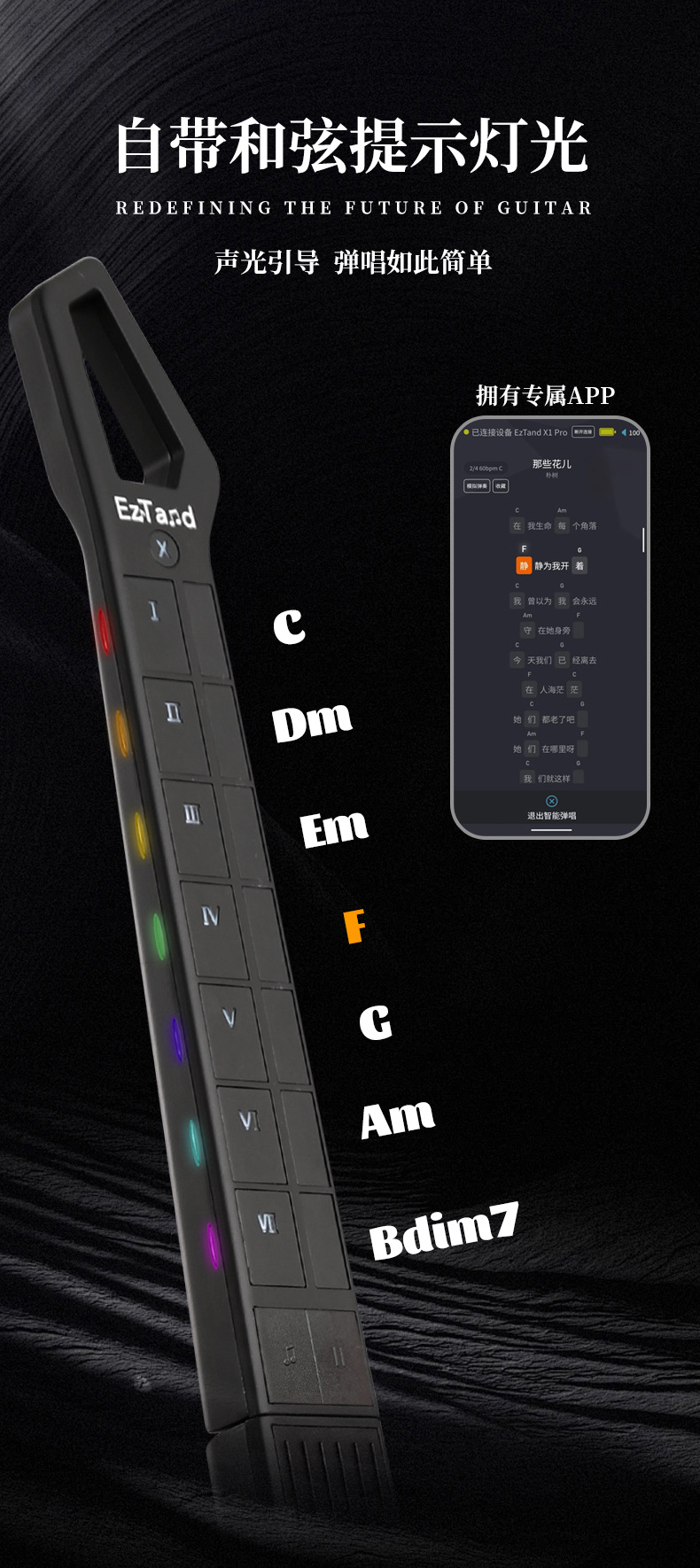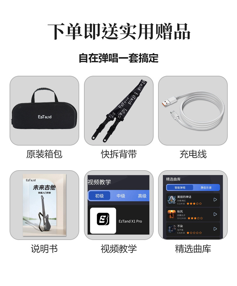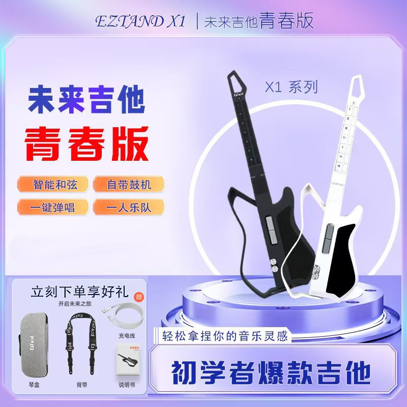 EzTand Art Play X1 [청소년 에디션] 미래 기타 끈없는 기타 반주 지능형 자동 일렉트릭 기타