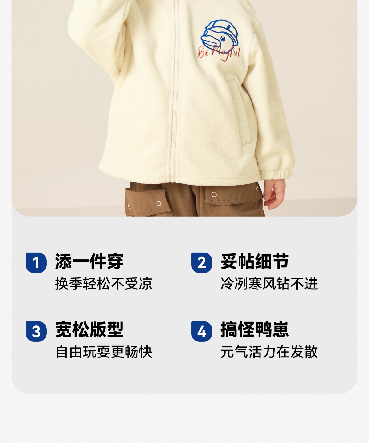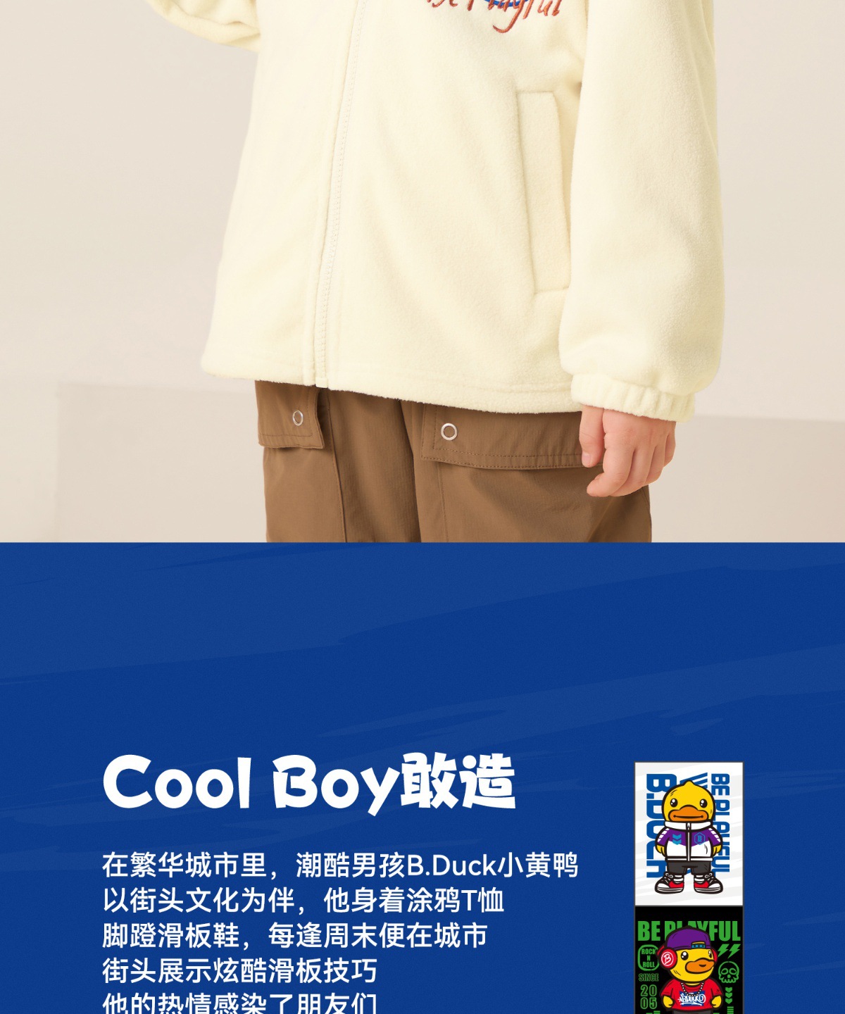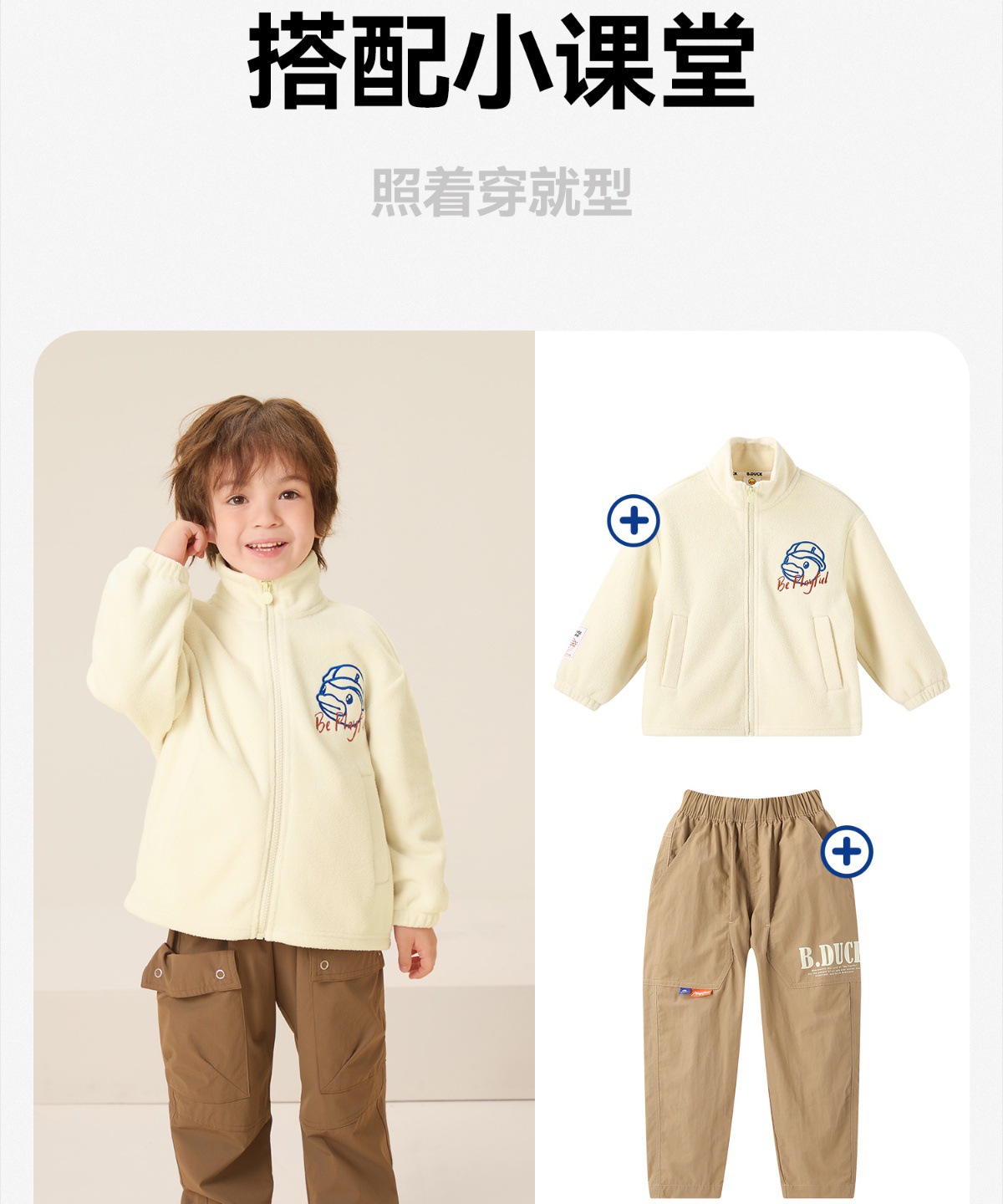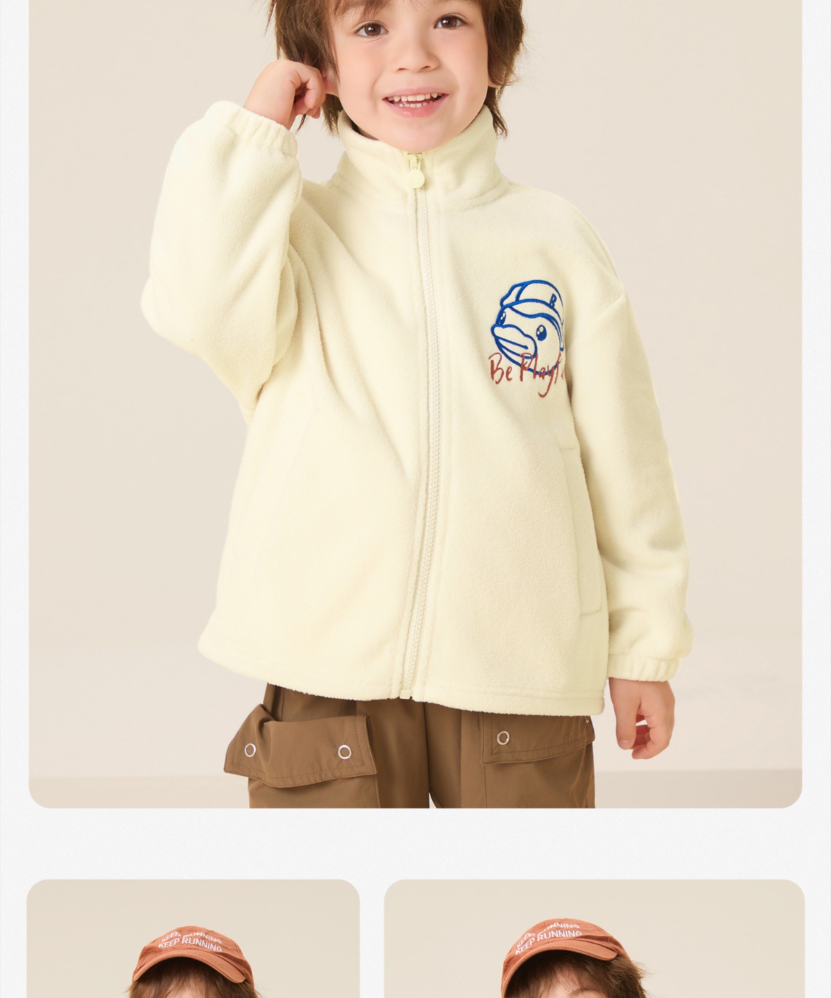Bduck Little Yellow Duck Children's Wear 어린이 코트 양털 탑 2024 가을 새 소년 재킷 양털 옷스토어 가기