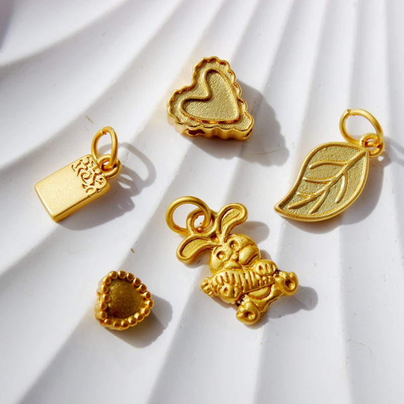 古法金包金保色爱心叶子光板立体兔子DIY手链项链手工饰品配件
