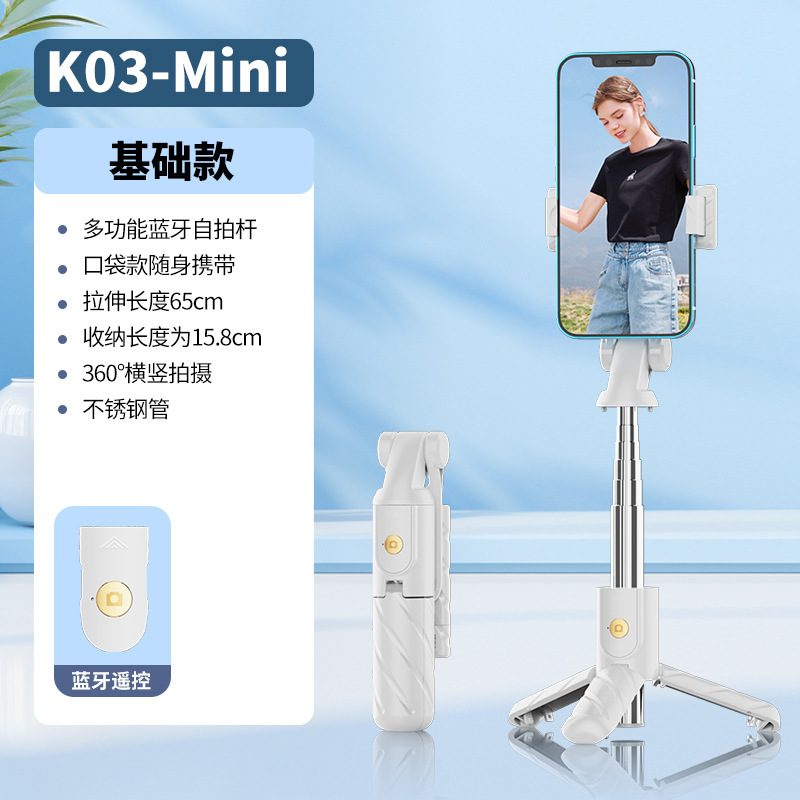 K03 휴대용 미니 셀카 스틱 안티 쉐이크 라이트 원격 제어 블루투스 라이브 데스크탑 삼각대 휴대 전화 홀더스토어 가기