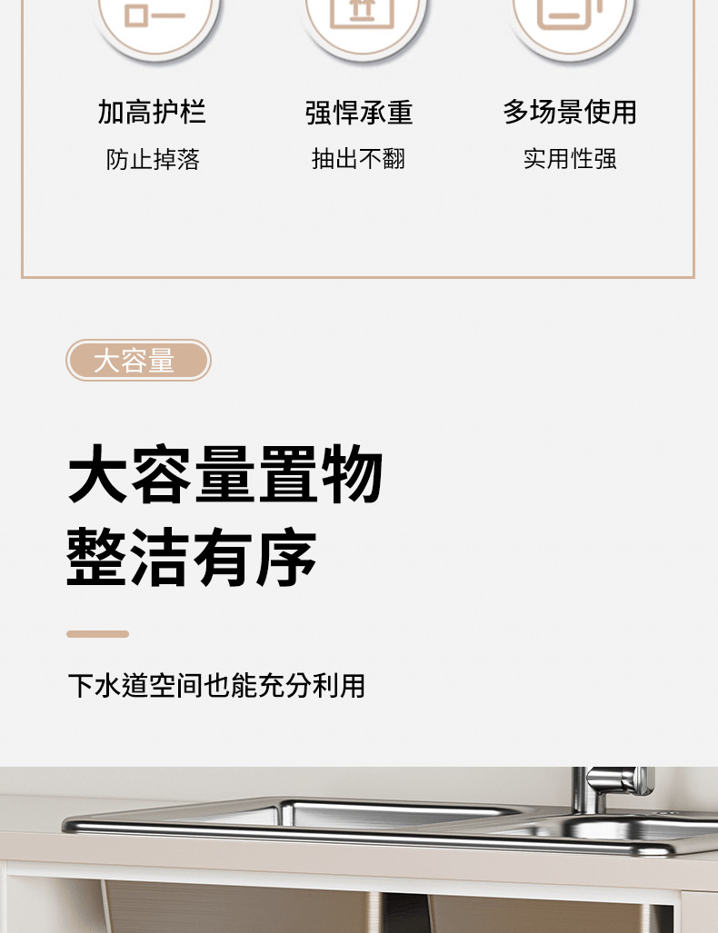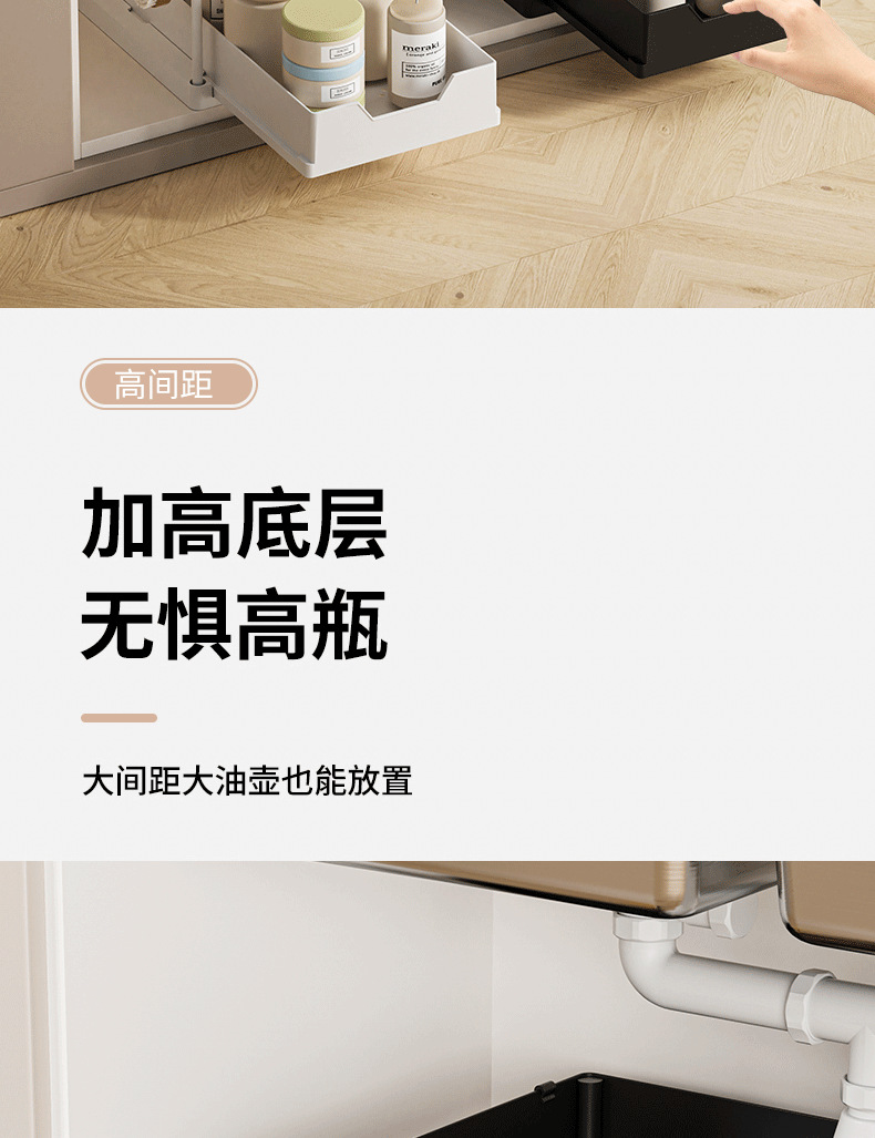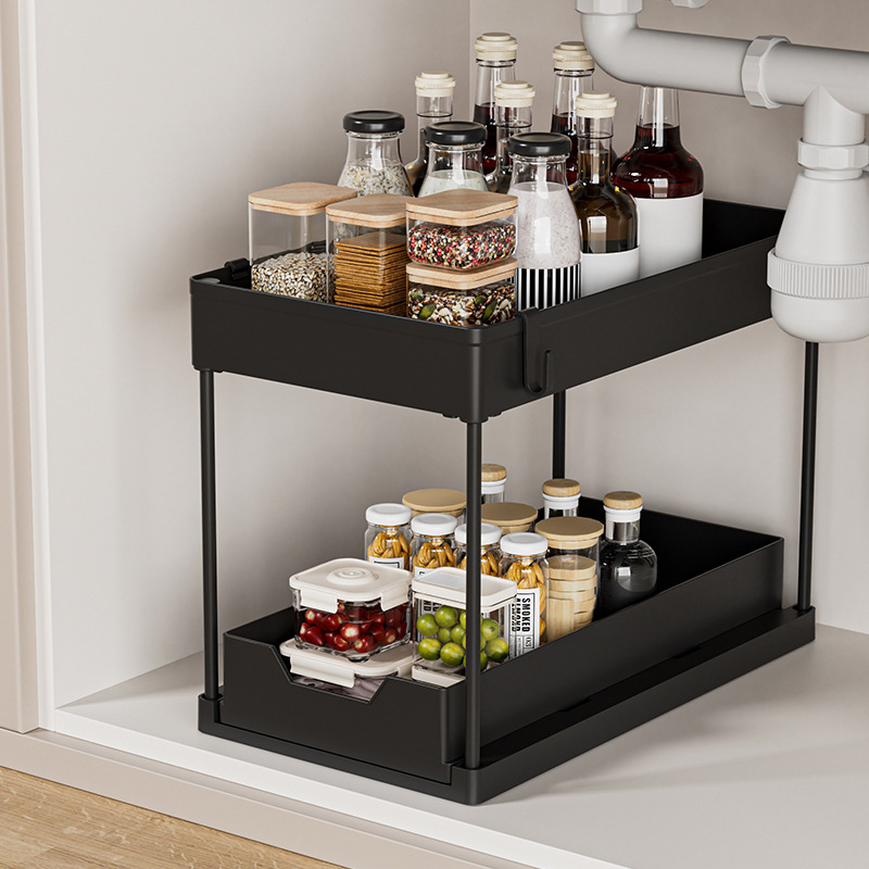 이중층 슬라이딩형 주방 싱크대 수납 선반 배수 간편 정리 선반 가정용 다기능 수납 선반
