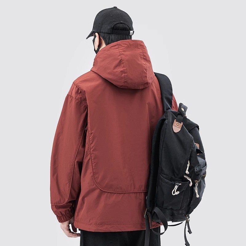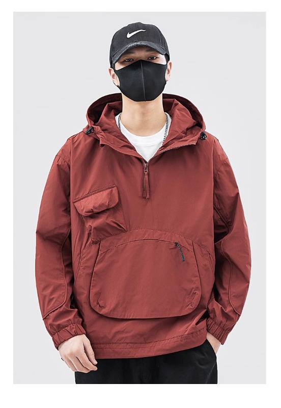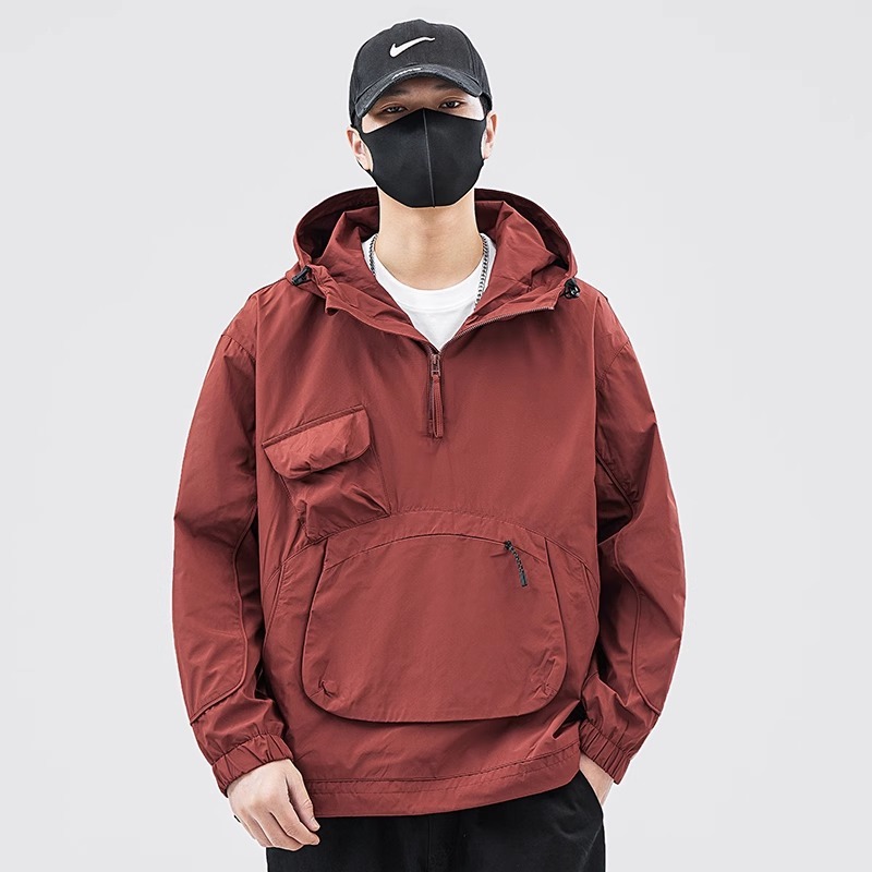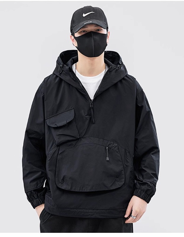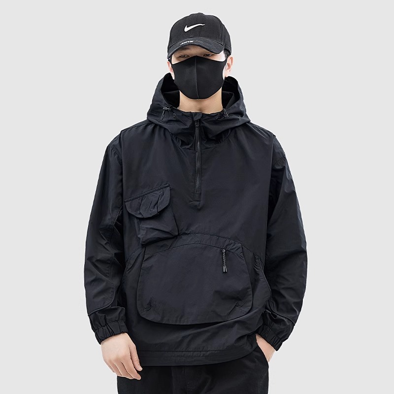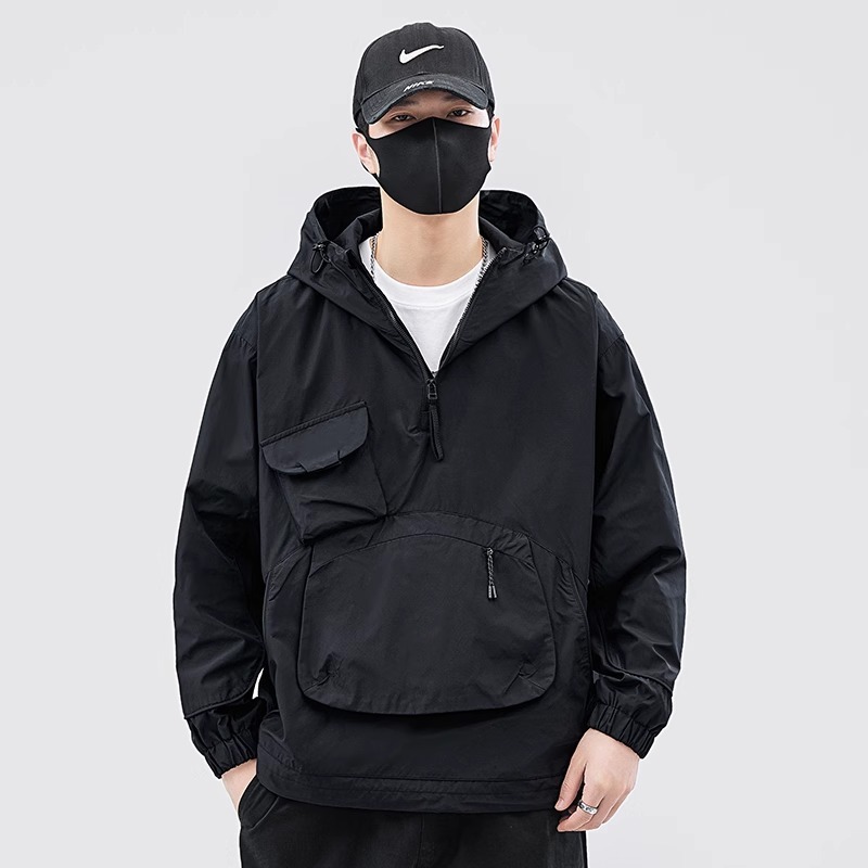 재킷 남자의 봄과 가을 틈새 후드 재킷 유행 멀티 포켓 작업 재킷 올 매치 러쉬 풀 재킷 풀오버 겉옷