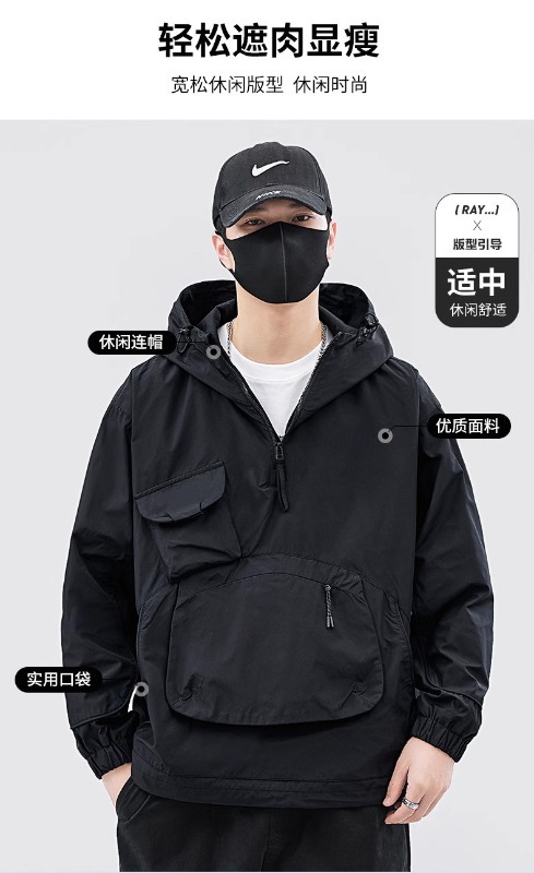 재킷 남자의 봄과 가을 틈새 후드 재킷 유행 멀티 포켓 작업 재킷 올 매치 러쉬 풀 재킷 풀오버 겉옷스토어 가기
